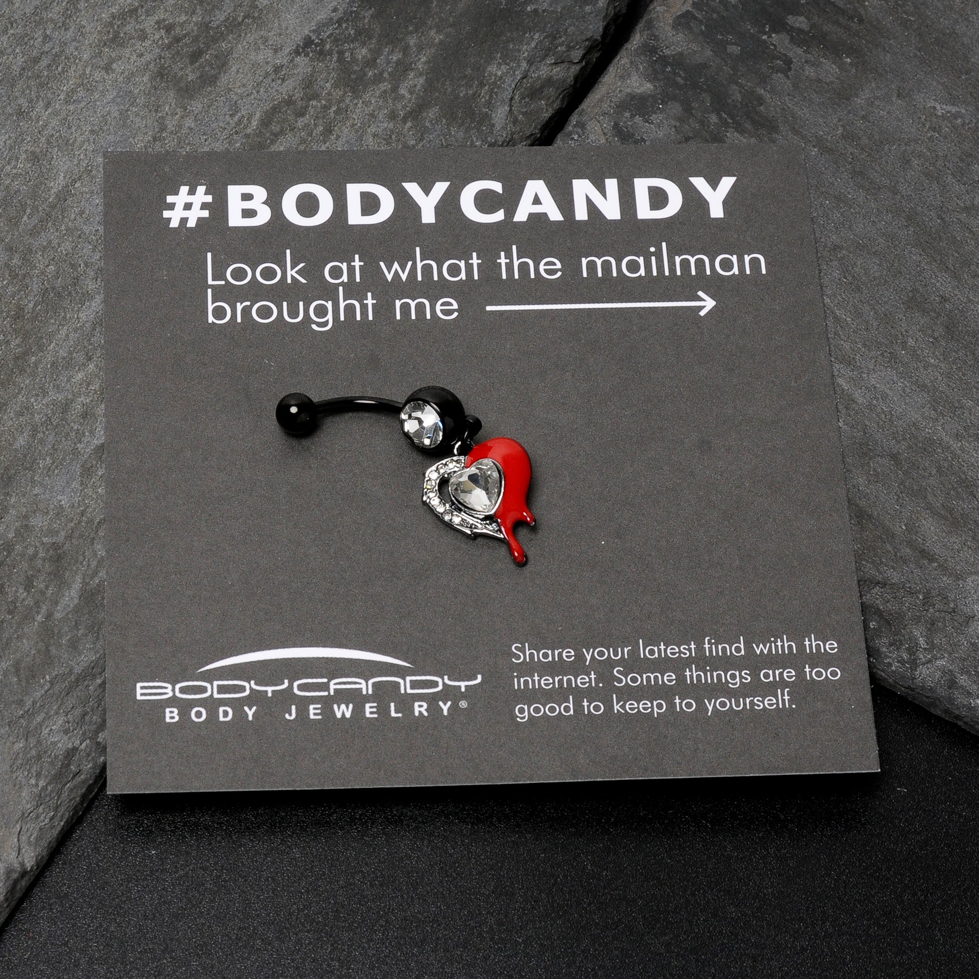 Clear Gem Black Bleeding Heart Dangle Belly Ring