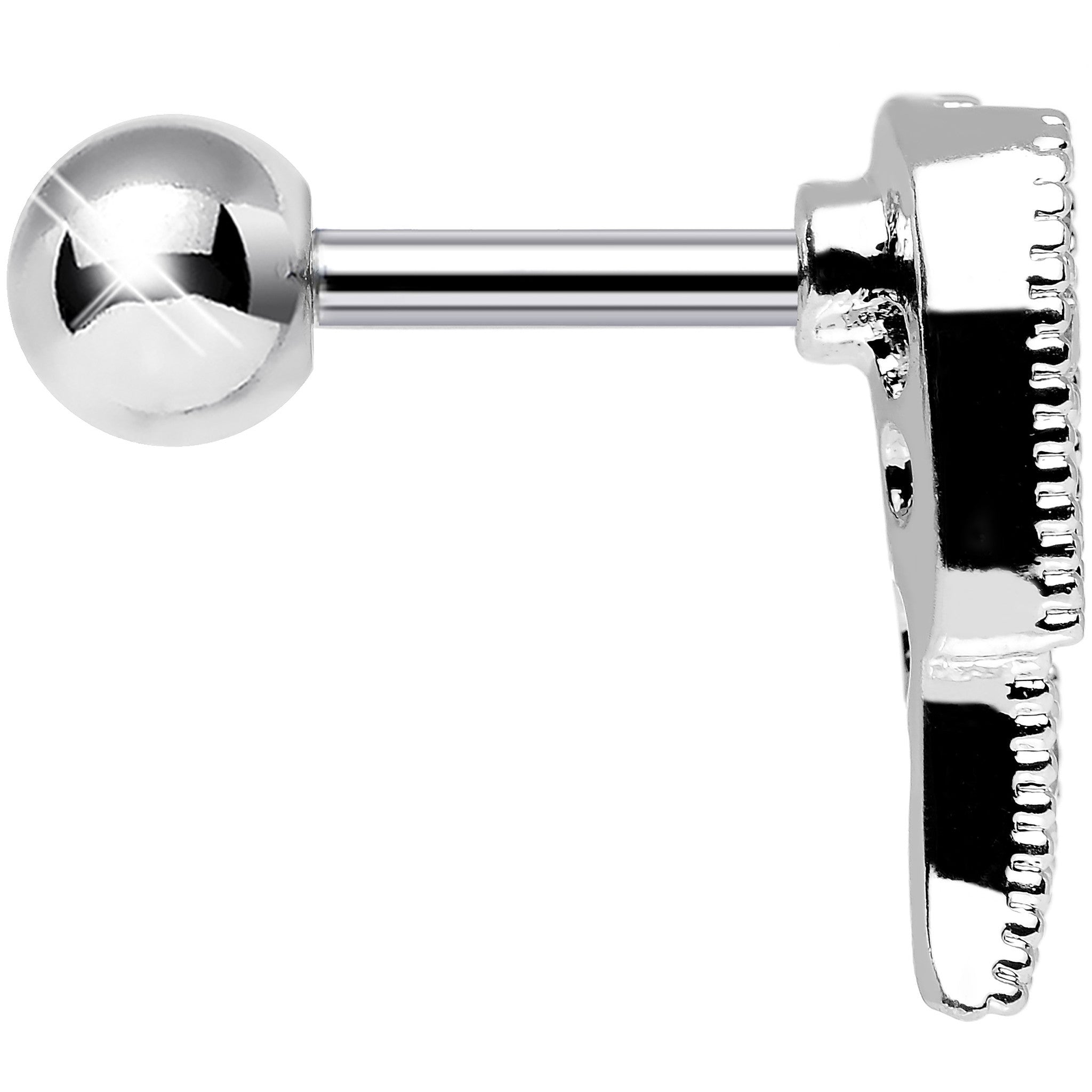 Never fly higher than your guardian angel can follow. Now there's no danger of that with this sparkling angel wing right ear cartilage tragus earring. A solitary clear gem studded wing is paired with a 16 gauge, 6mm stainless steel barbell to keep you on a heavenly path.
