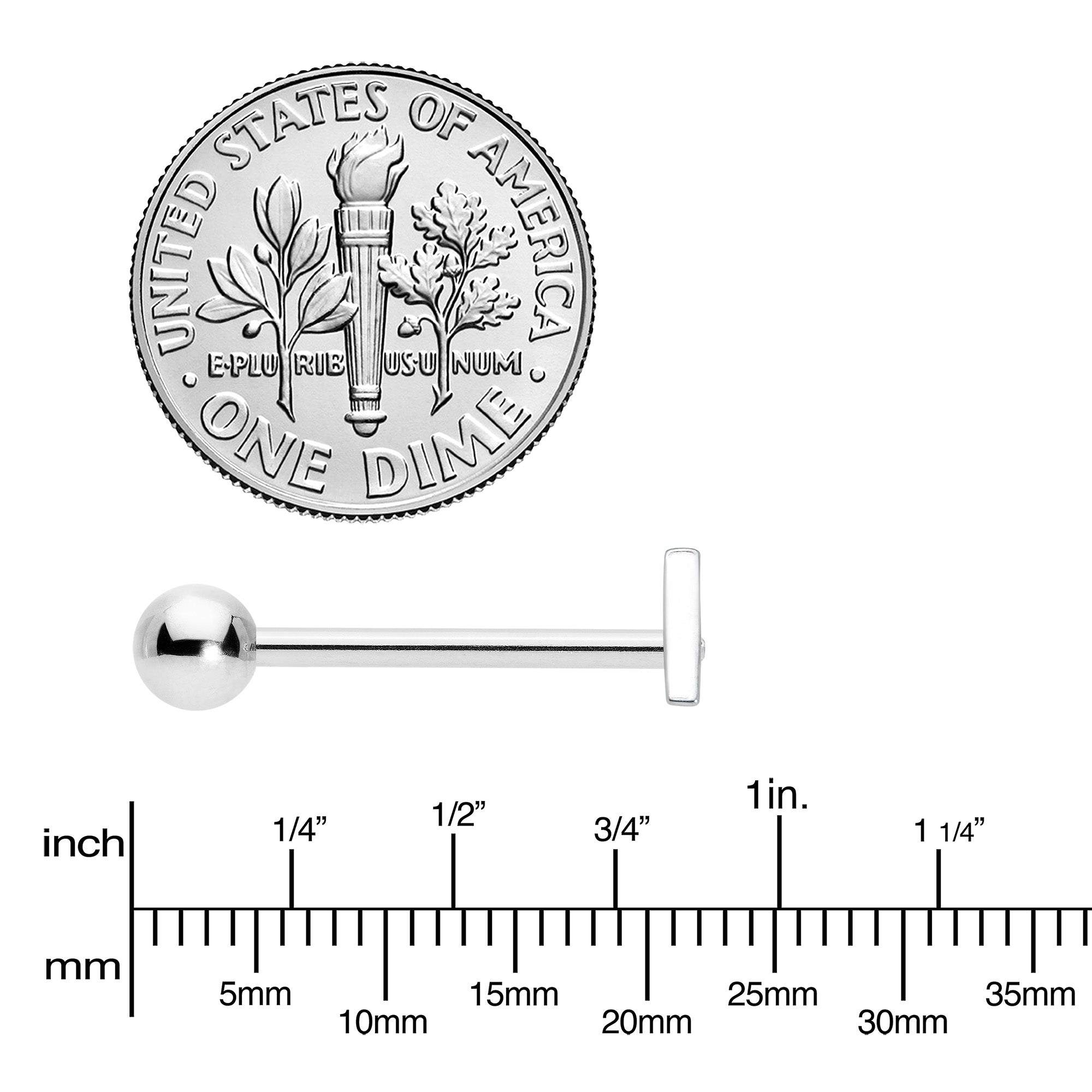 Sometimes we want our look to speak softly - like on this 14 gauge tongue jewelry! It's made with a 5/8" durable 316L surgical grade stainless steel straight barbell with a 5mm bottom ball end. The top end features an understated charm of a pair of triangle nestled within one another. At the very center of the pair sits a clear gem for a low-key pop of style. For a look that says volumes without overwhelming, this tongue piercing ring is all you'll need!