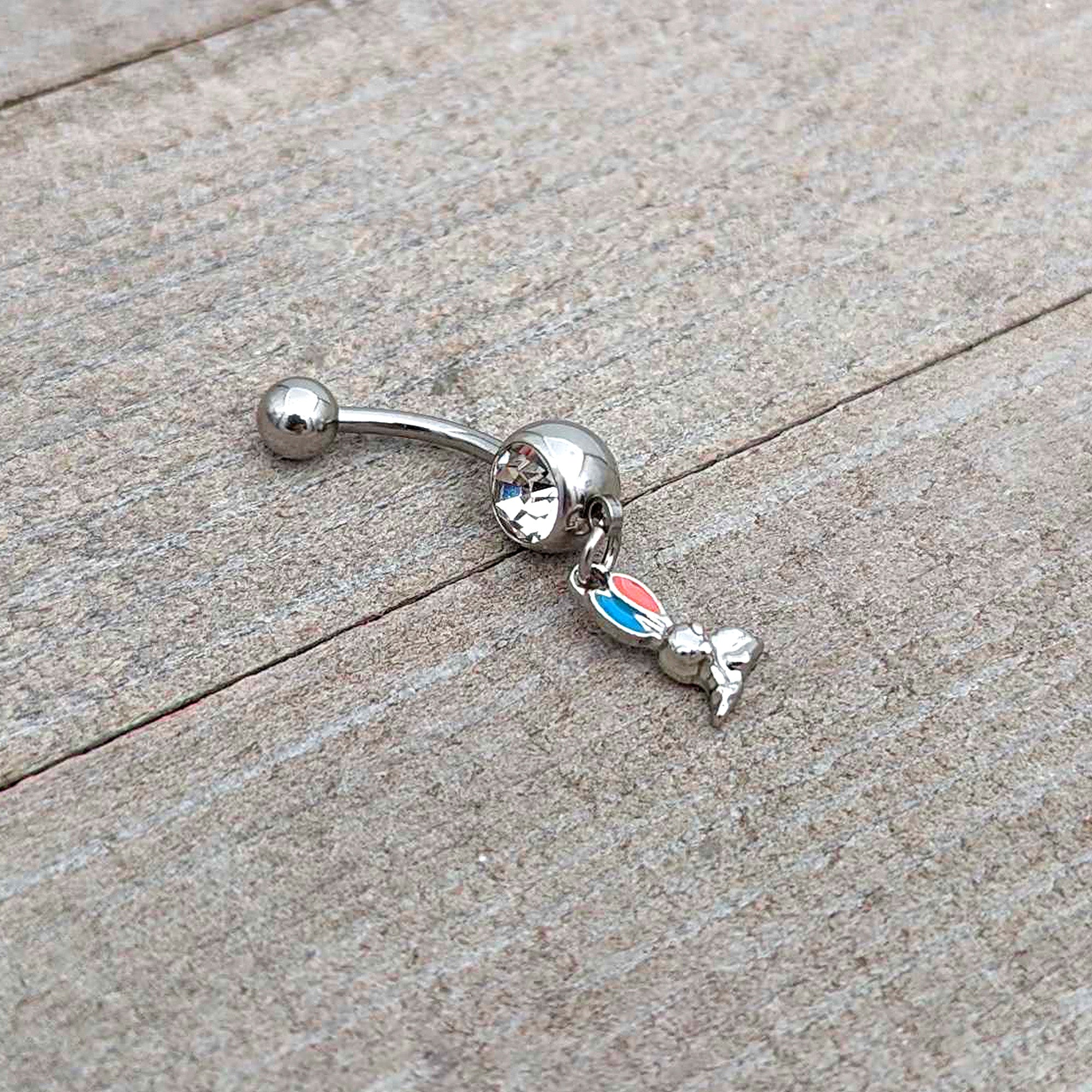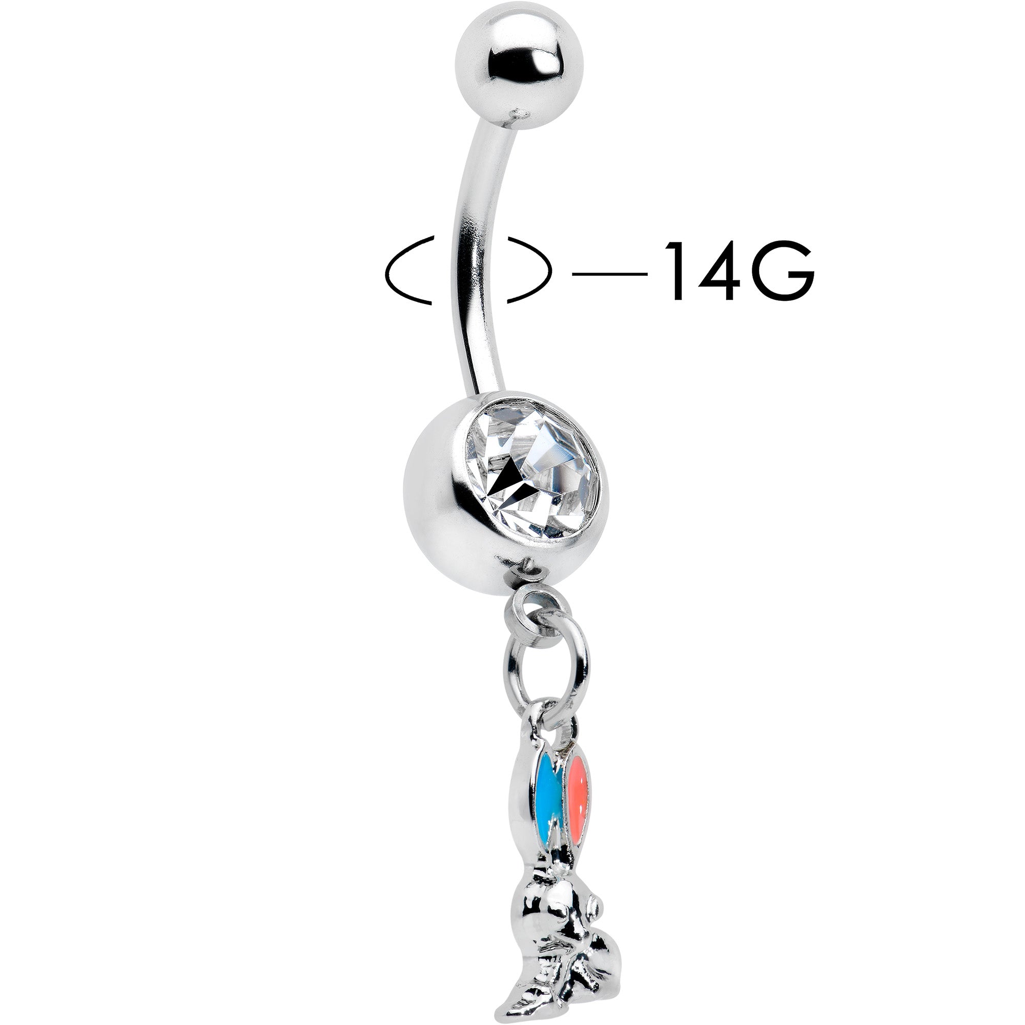 Clear Gem Easter Bunny Red Blue Ears Dangle Belly Ring