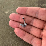 Frolic in the flowers with this 14 gauge navel ring! It's made with a 3/8 durable 316L surgical grade stainless steel curved barbell with a 5mm top ball end. The bottom end features a flower charm, with a large central flower flanked by a pair of smaller flowers. All of the flowers are paved with clear gems for a thoroughly glam look. You'll be ready to bloom when you're rocking this fabulously floral belly piercing ring!