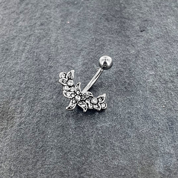 Clear Gem Flower Garland Belly Ring
