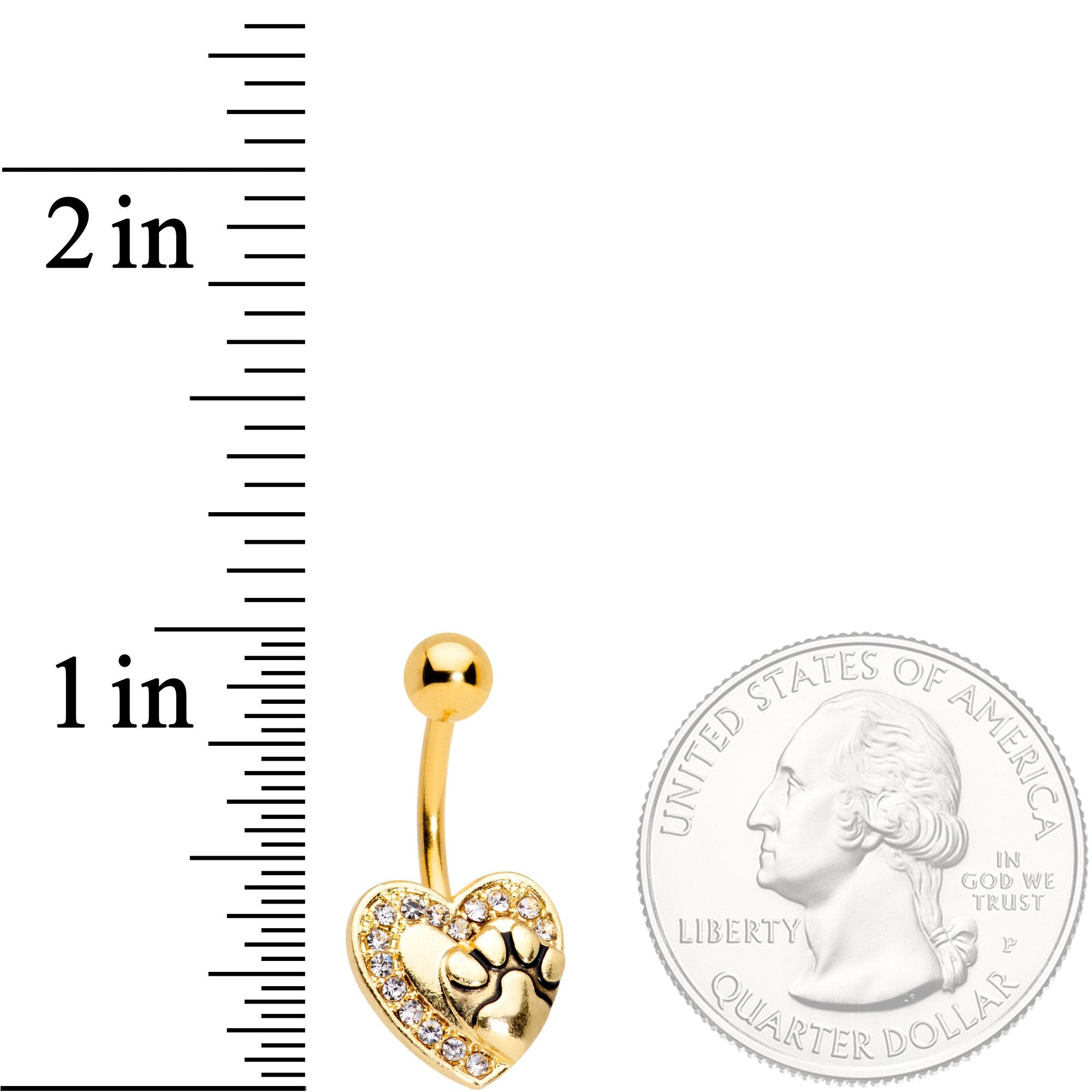 Clear Gem Gold Tone Paw Print Heart Puppy Love Belly Ring