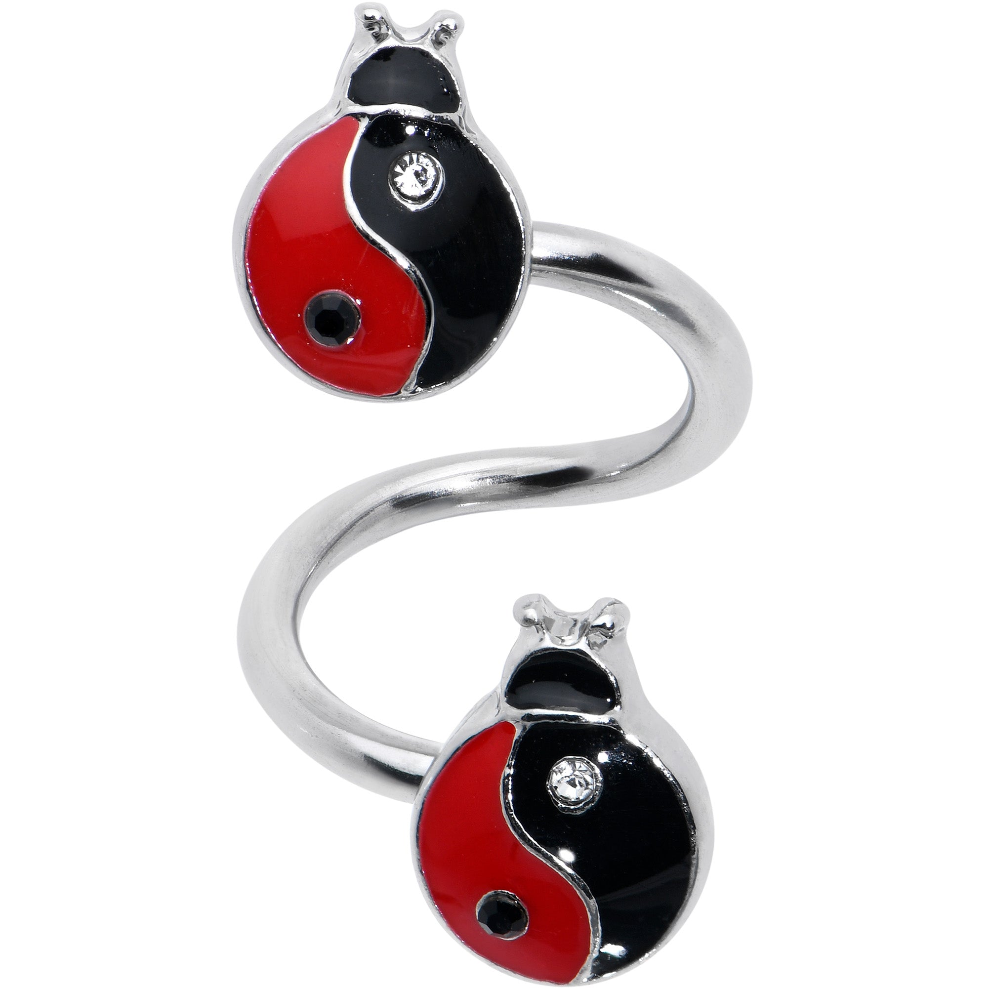 Clear Gem Ladybug Yin Yang Spiral Twister Belly Ring