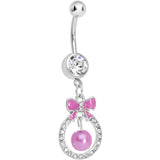 Clear Gem Pink Bow Wreathed Faux Pearl Dangle Belly Ring