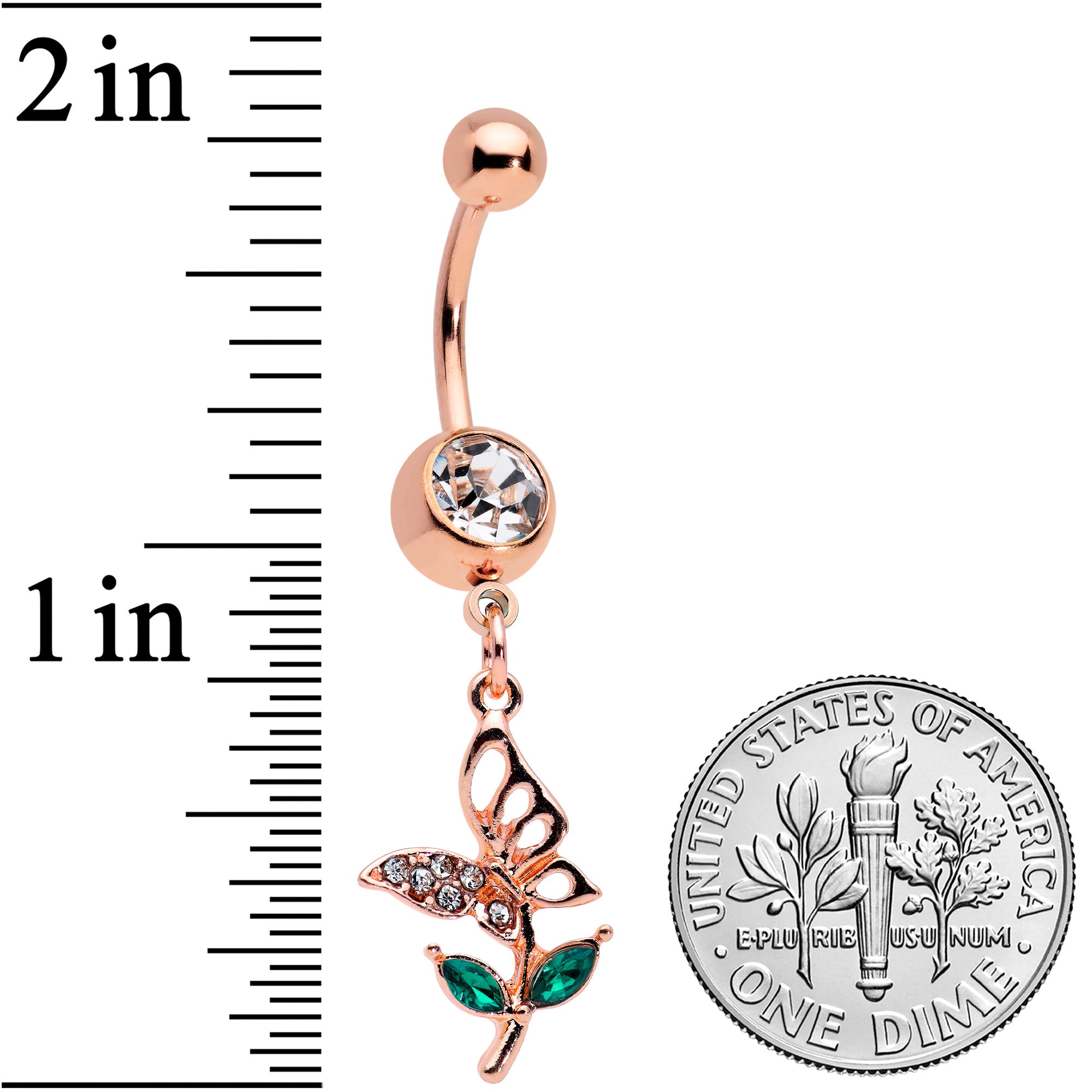 Clear Gem Rose Gold Tone Perching Floral Butterfly Dangle Belly Ring