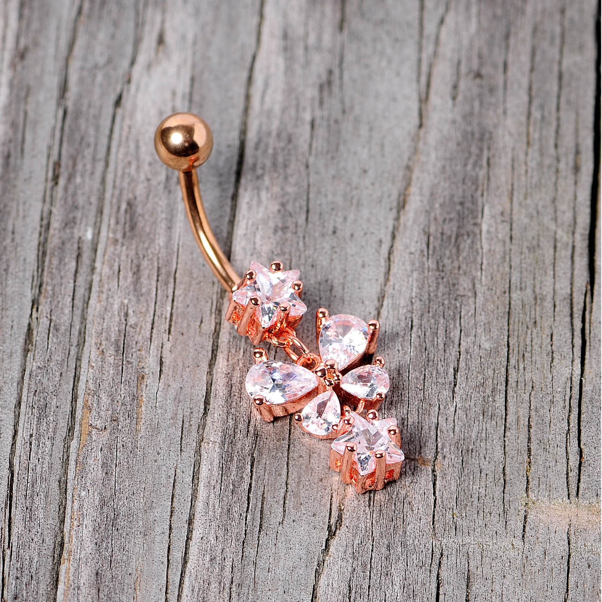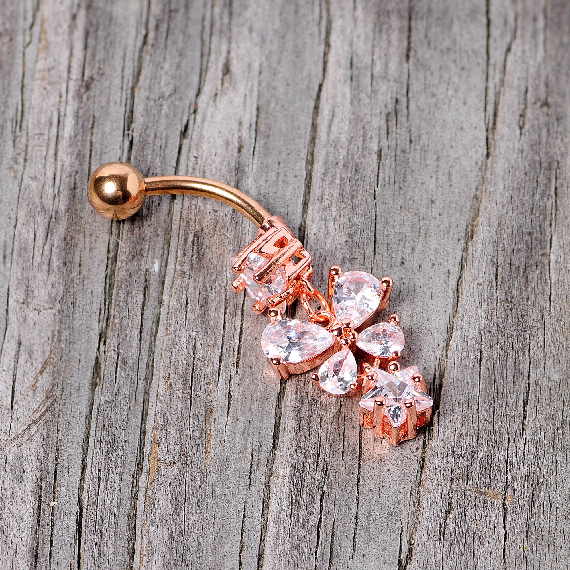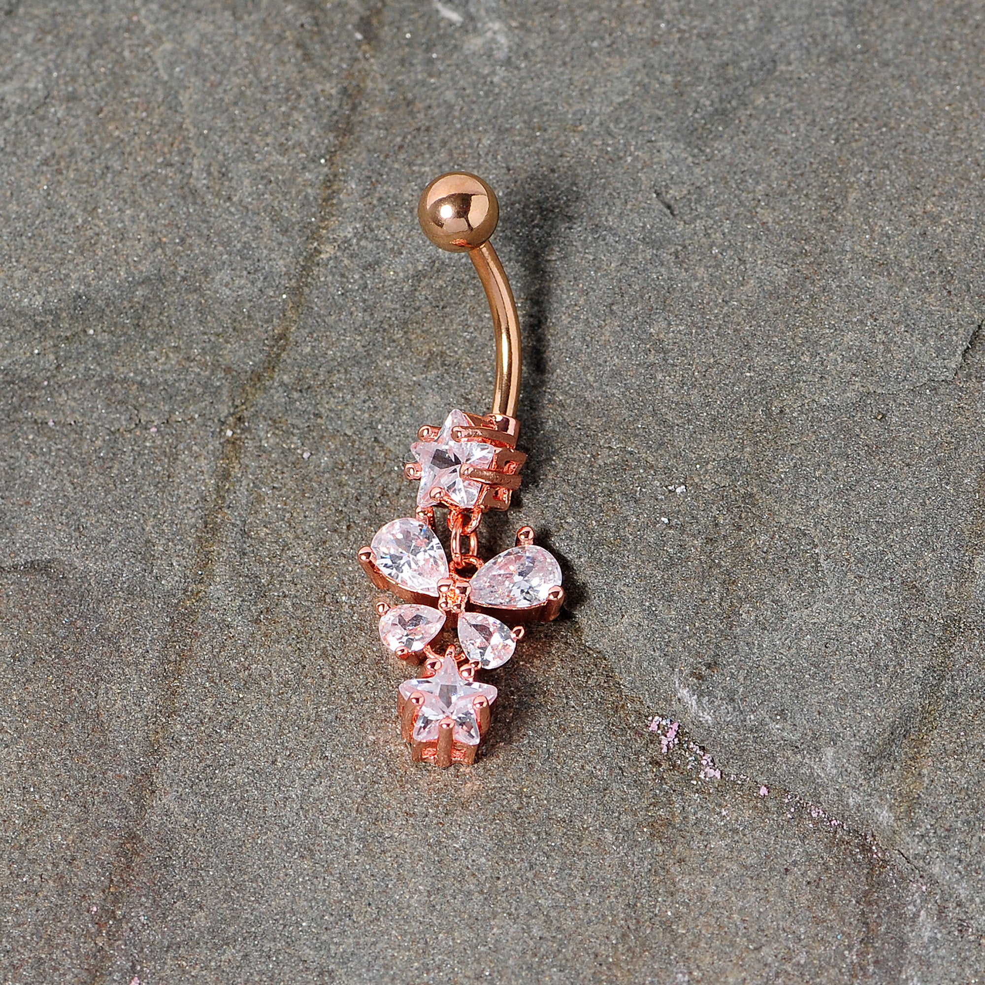 Clear Gem Rose Gold Tone Star and Bow Dangle Belly Ring
