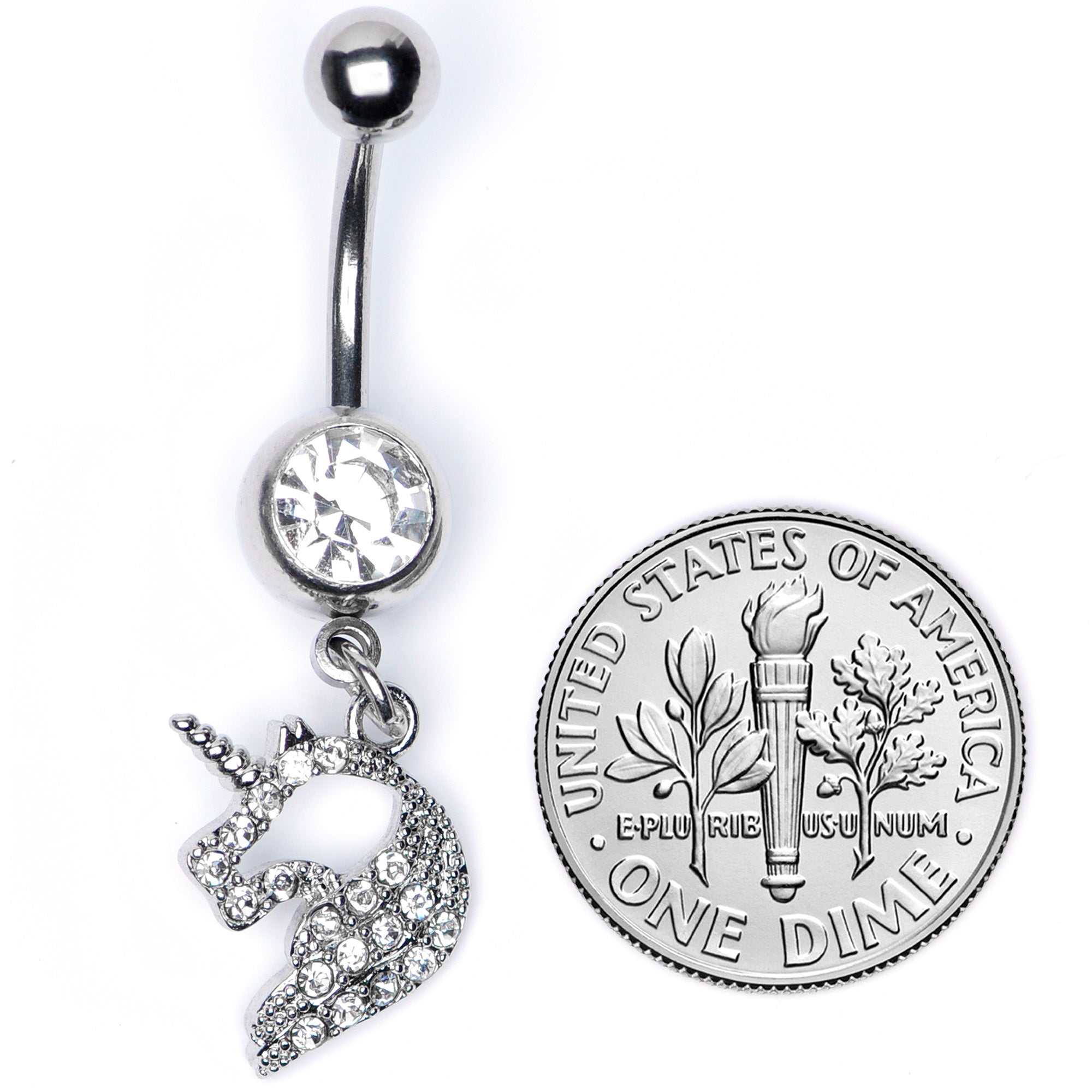 Clear Gem Silhouette Unicorn Dangle Belly Ring