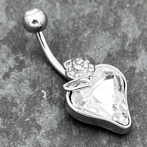 How delicious this 14 gauge navel ring looks. It is made with a 3/8 inch 316L surgical grade stainless steel curved barbell. The top ball end is 5mm and set with a clear gem. The bottom end features a clear gem strawberry with detailed embellishment which is set with clear gems. You will be feeling the summer strawberry love with this fabulous fruit belly piercing jewelry.