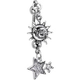 Clear Gem Sun Moon Star Double Mount Dangle Belly Ring