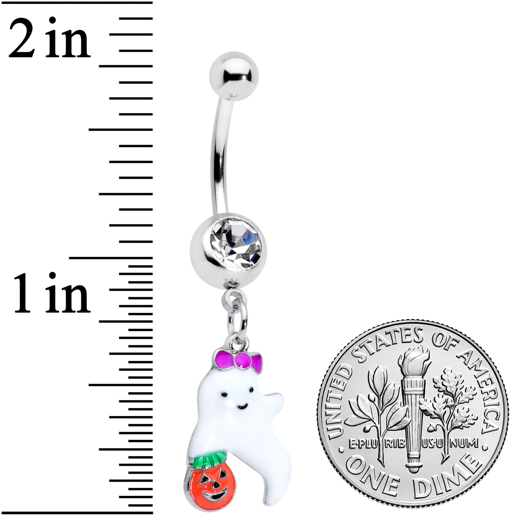 Clear Gem Trick or Treat Purple Bow Ghost Halloween Dangle Belly Ring