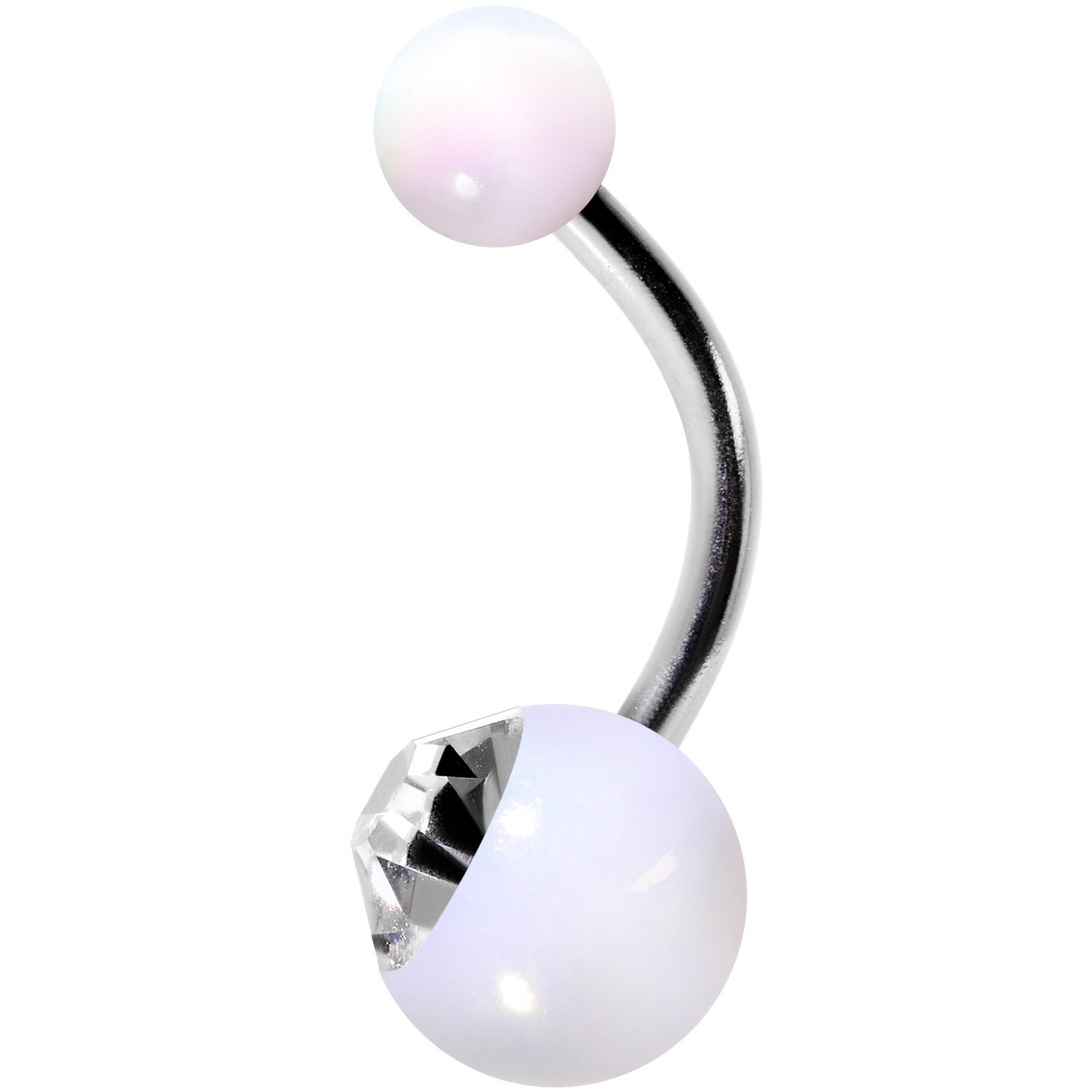 Clear Gem White Pearlescent Acrylic Celestial Rainbow Belly Ring