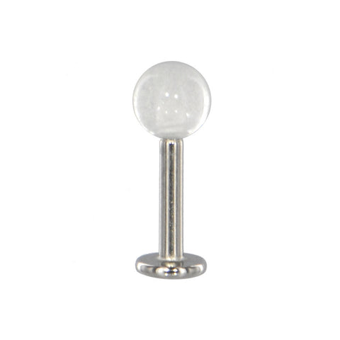 14 Gauge 3/8 Clear Acrylic Glow in the Dark LabretClear acrylic ball lip piercing featuring a 316L stainless steel post. Fashion that offers enlightment! Set yourself apart from the crowd with this clear glow-in-the-dark monroe labret piercing.