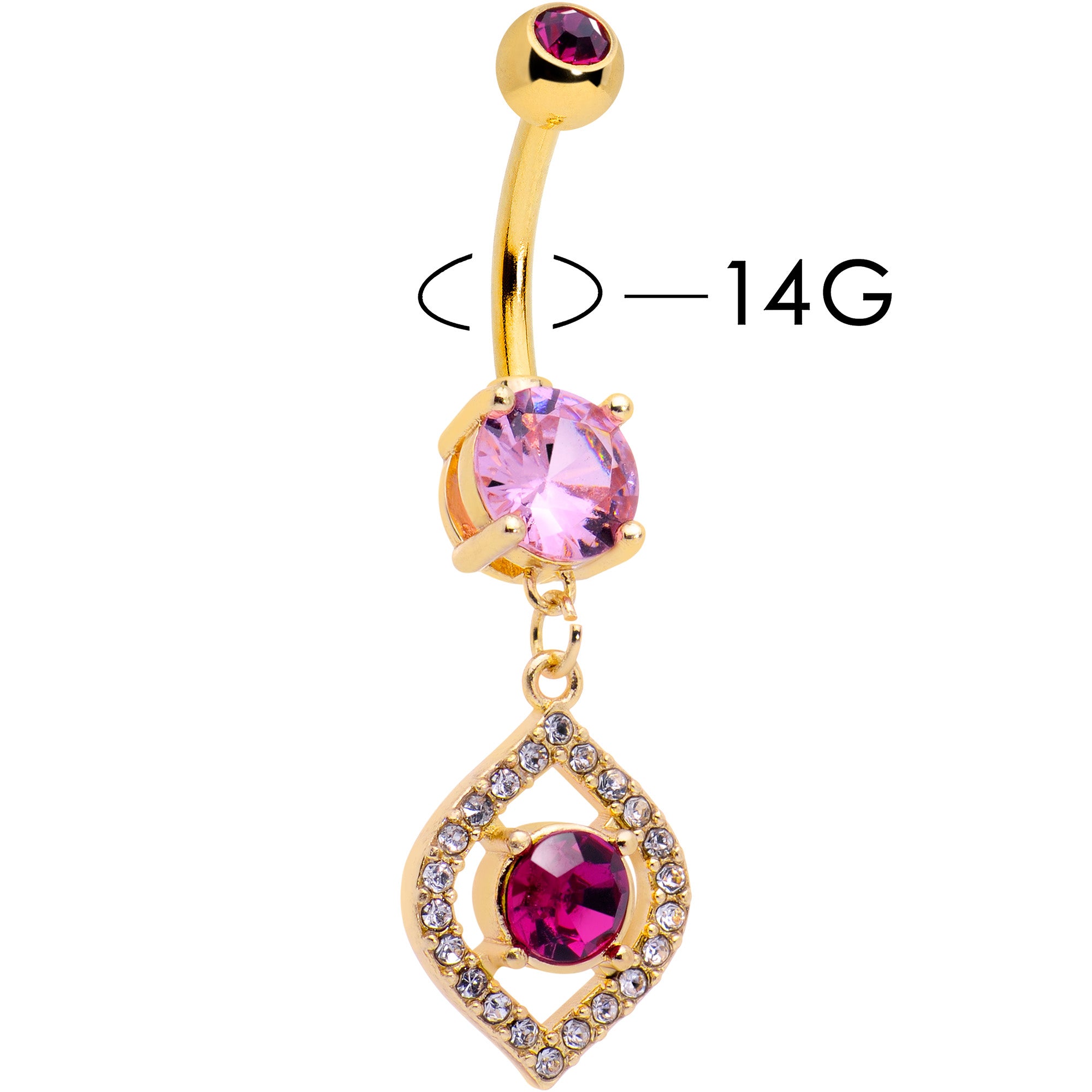 Clear Pink Gem Gold Tone Open Eye Dangle Belly Ring