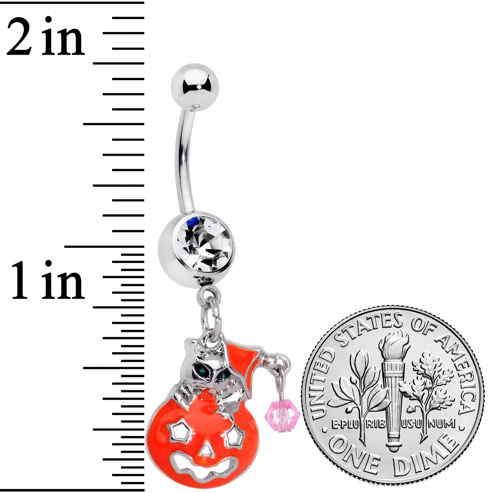 Clear Pink Gem Kitty Pumpkin Surprise Halloween Dangle Belly Ring