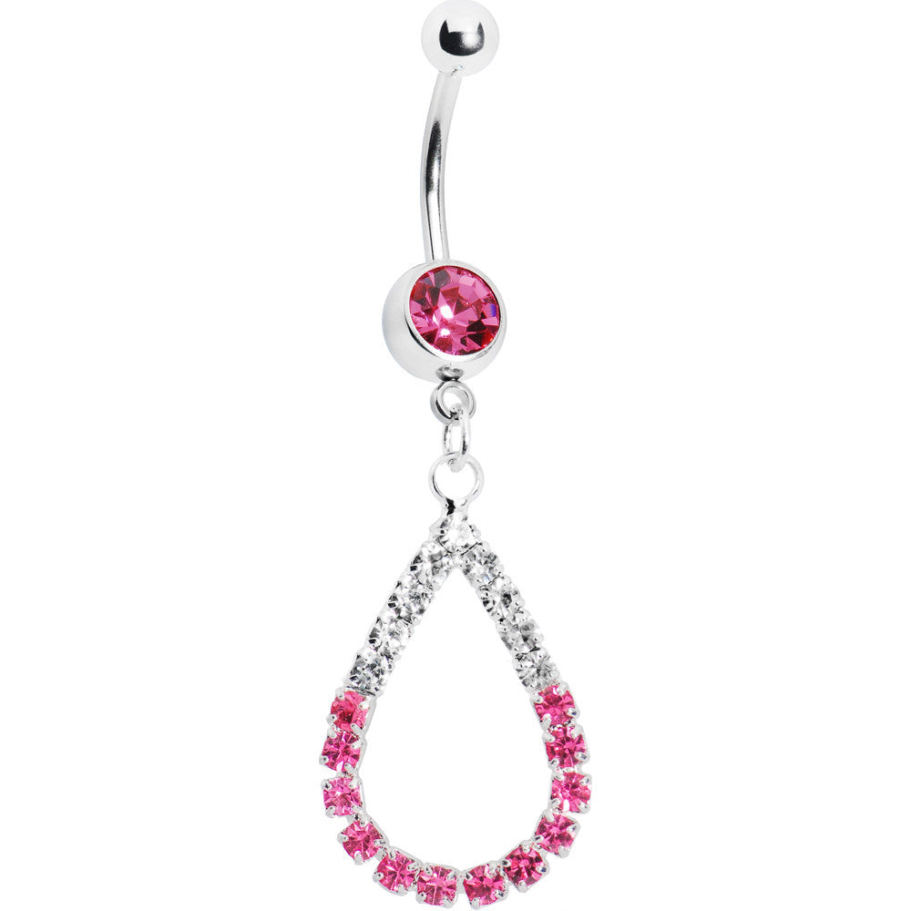 Clear Pink Jeweled Teardrop Belly Ring