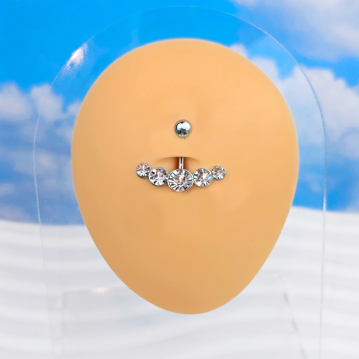 Crystalline Gem Five Across Top Mount Belly Ring