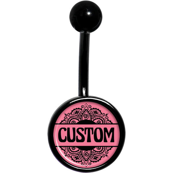 Custom Pink Mandala Personalized Name Black Belly Ring