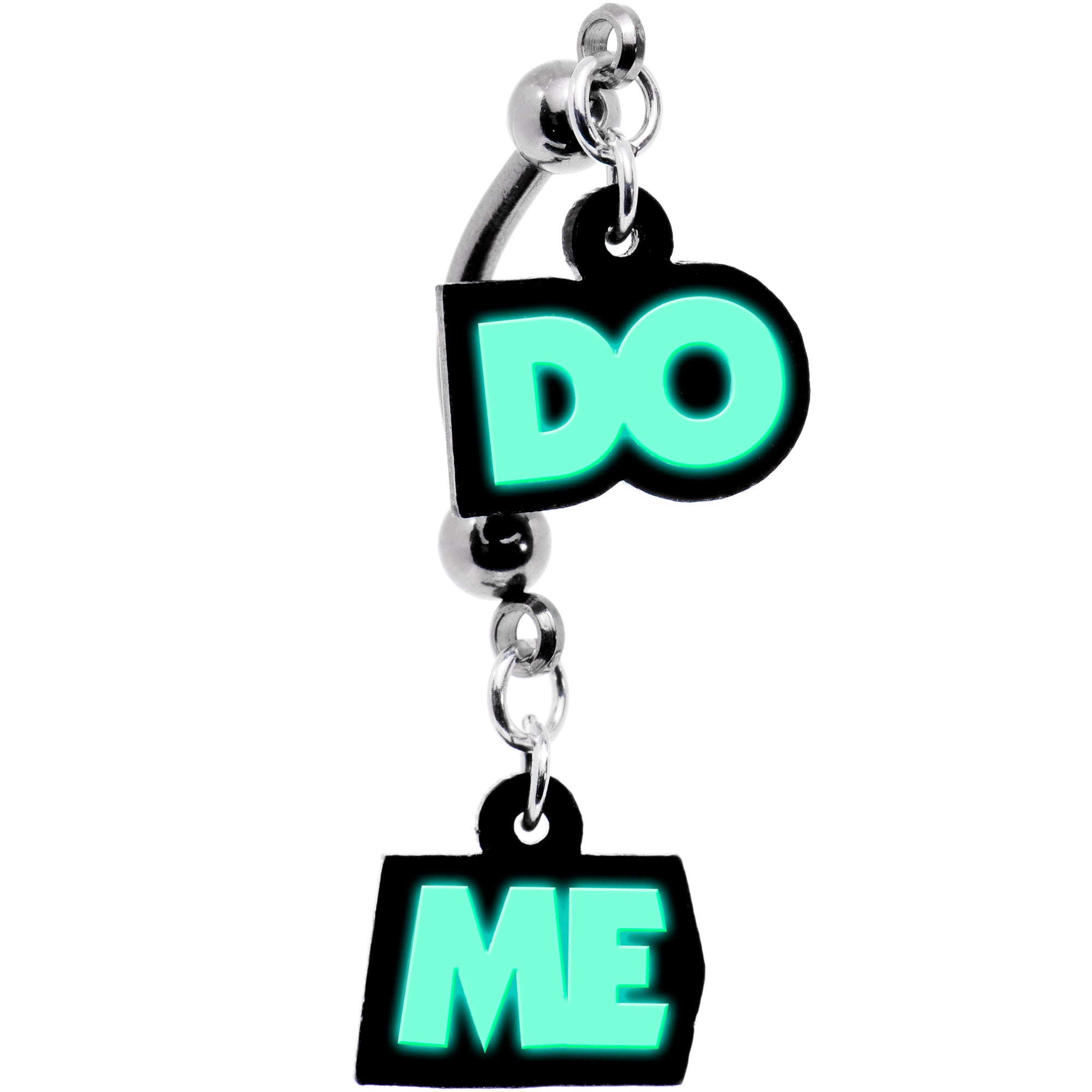 Show off your badass sexy side whenever you wear this naughty 14 gauge navel ring that will let everyone know what you're after! Made with a 7/16" durable 316L surgical grade stainless steel curved barbell, this belly button ring features top and bottom glow in the dark text charms that say "Do" on the top and "Me" on the bottom. No matter where you are make sure to send a not-so-subtle message: "Do Me!"