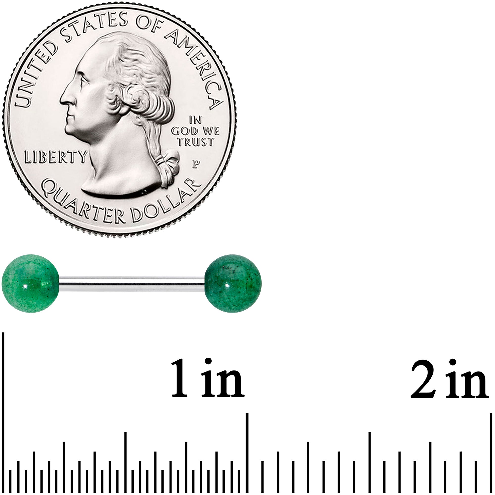 Make your tongue piercing pretty with this 14 gauge tongue jewelry! It's made with a 5/8" durable 316L surgical grade stainless steel straight barbell. It features a 6mm ball ends made with green jade for a look that's both elegant and a little bit mystical. Whether you're a rockhound, a hippie, or a lover of nature, this gorgeous tongue piercing ring is sure to give leave you happy!