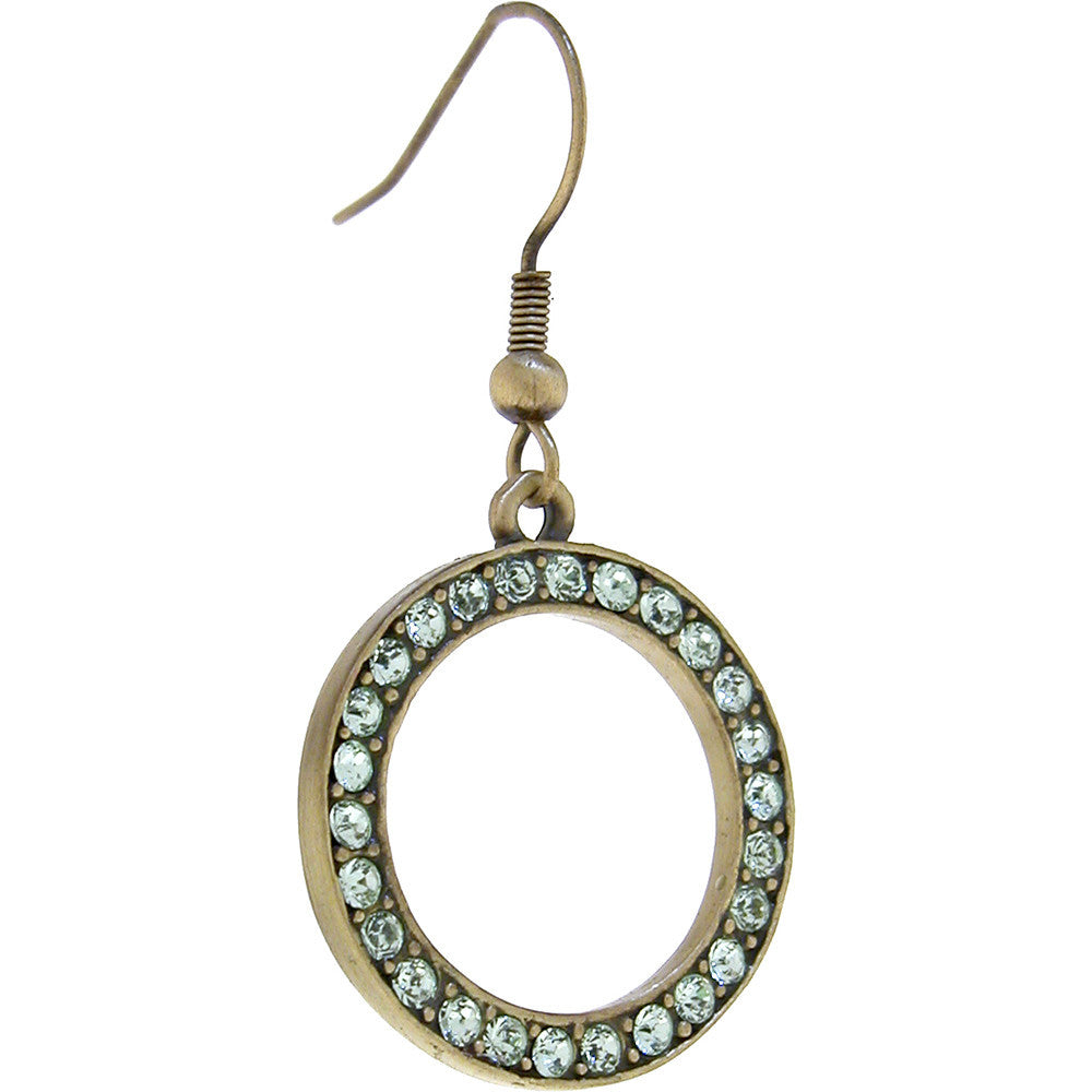 ELLE Antique Gold Chrysolite Rhinestone CIRCLE Earrings