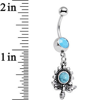 Faux Turquoise Buzzing Bee Favorite Flower Dangle Belly Ring