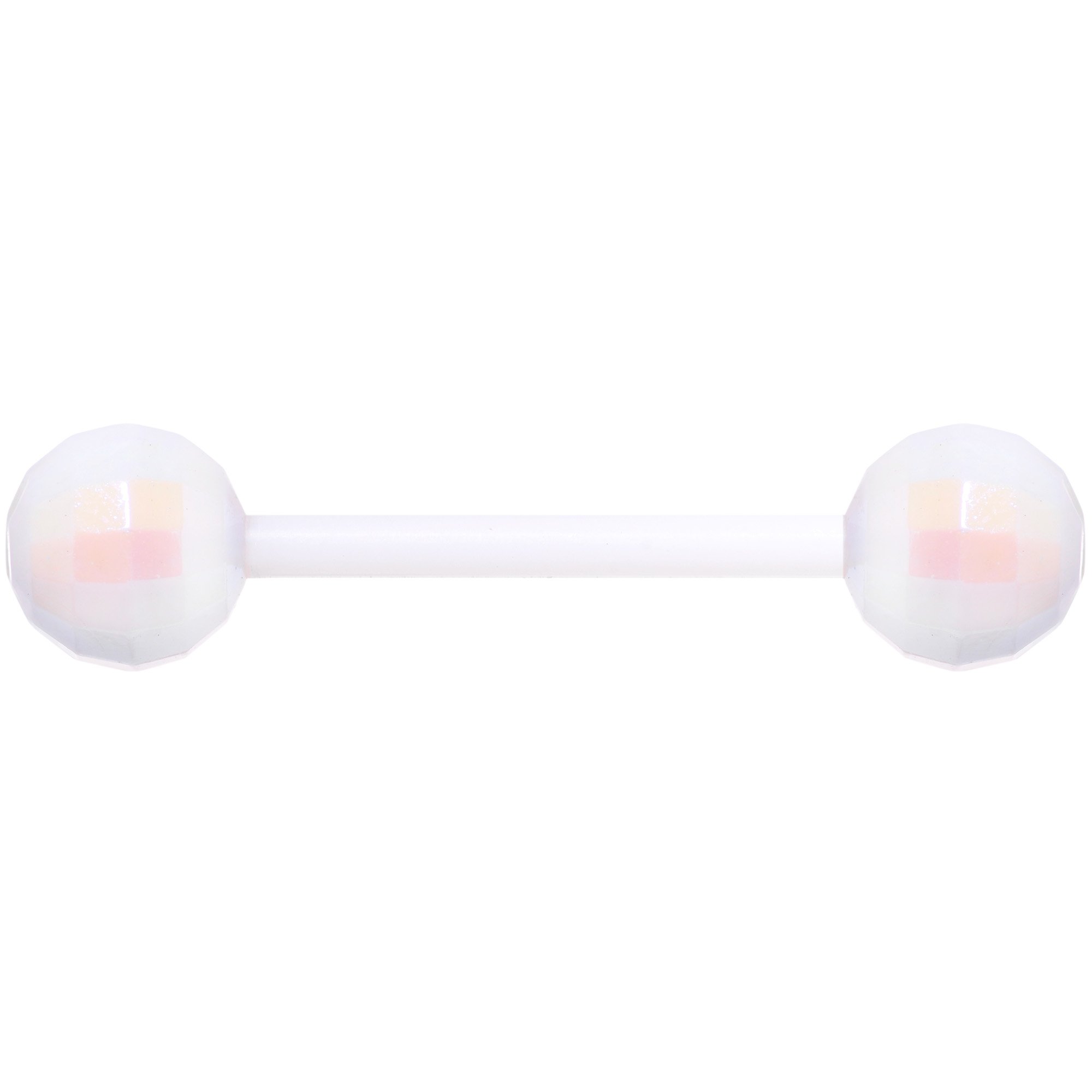 Flexible Acrylic Iridescent White Disco Ball Barbell Tongue Ring