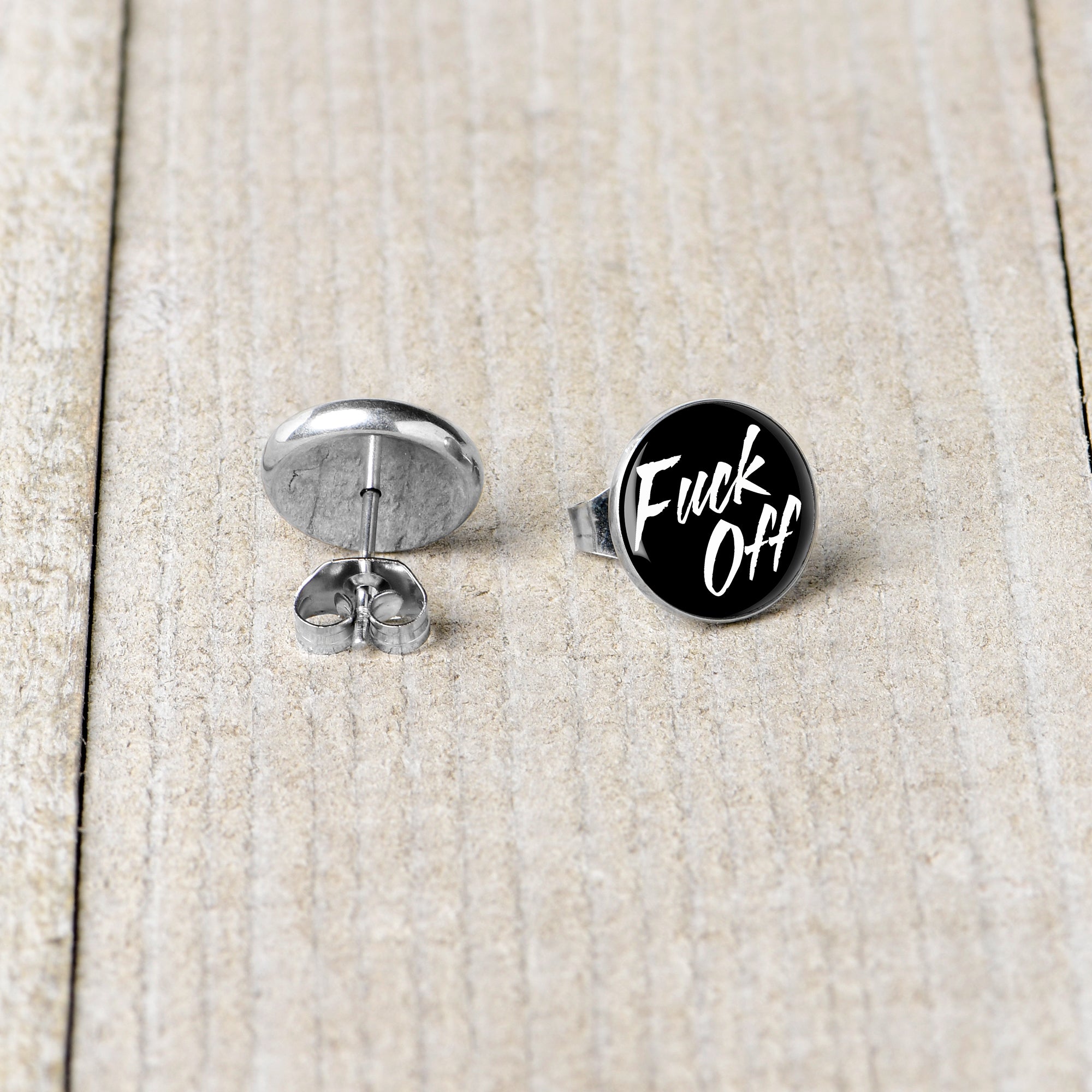 Hypoallergenic jewelry for sensitive skin.Fuck Off Stud Earrings