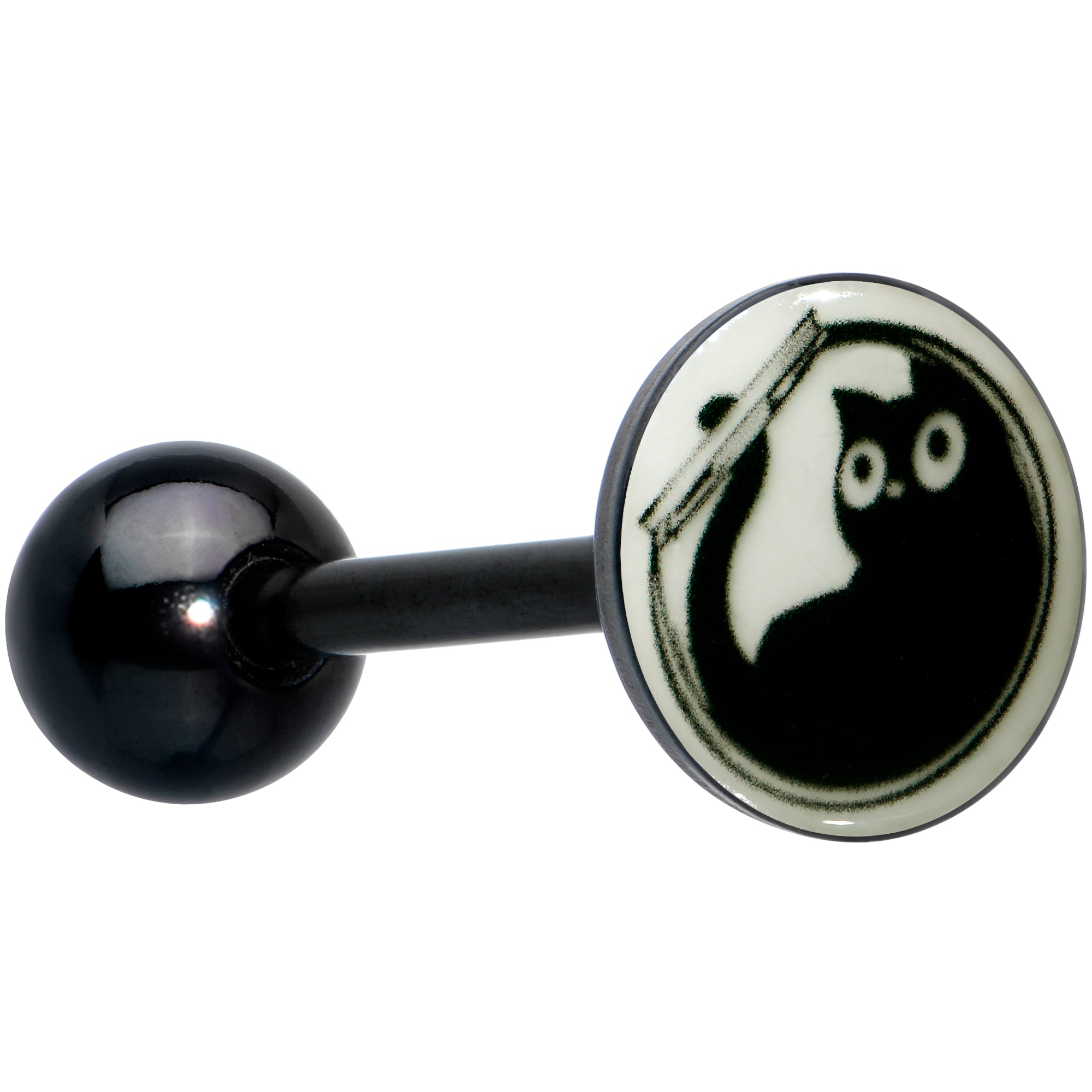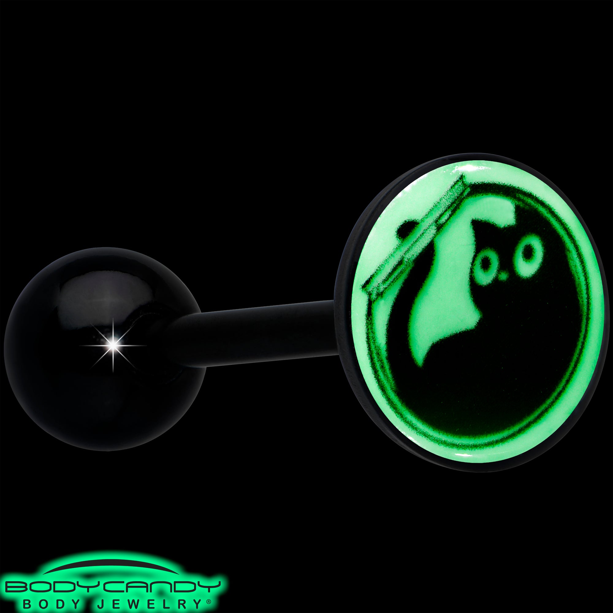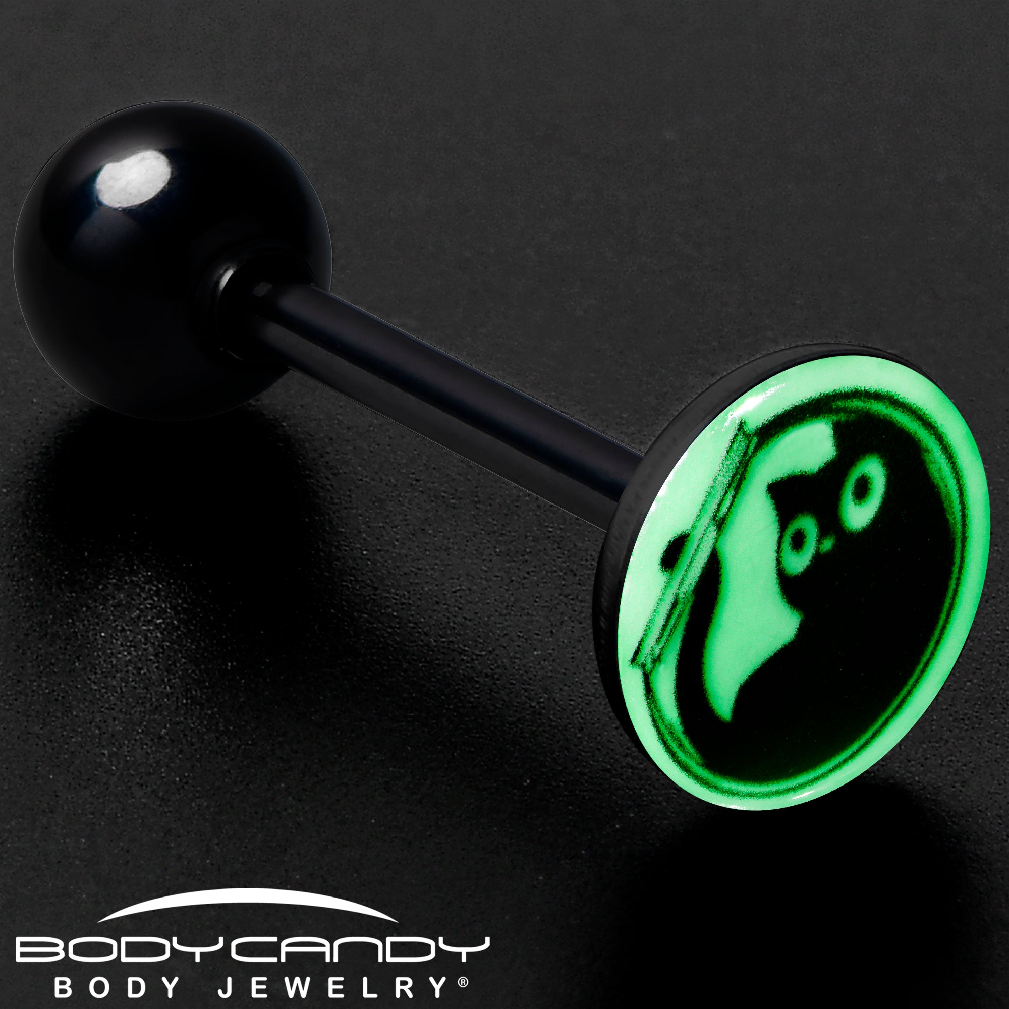 Glow in the Dark Black Anodized Fishbowl Kitty Cat Barbell Tongue Ring by Onyx O