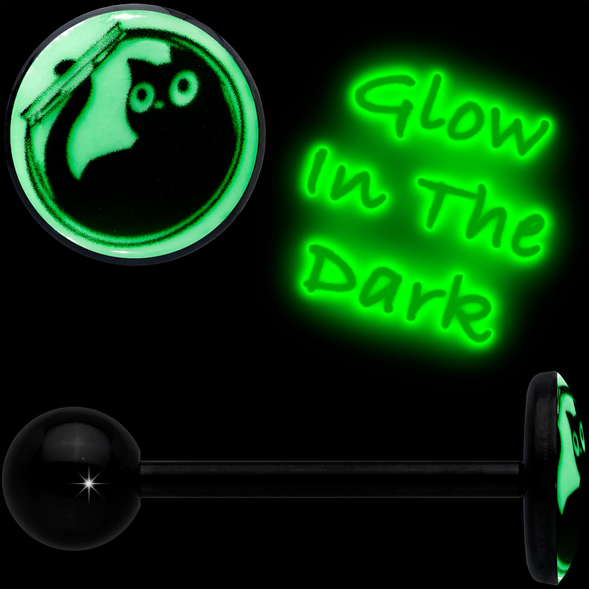 Glow in the Dark Black Anodized Fishbowl Kitty Cat Barbell Tongue Ring