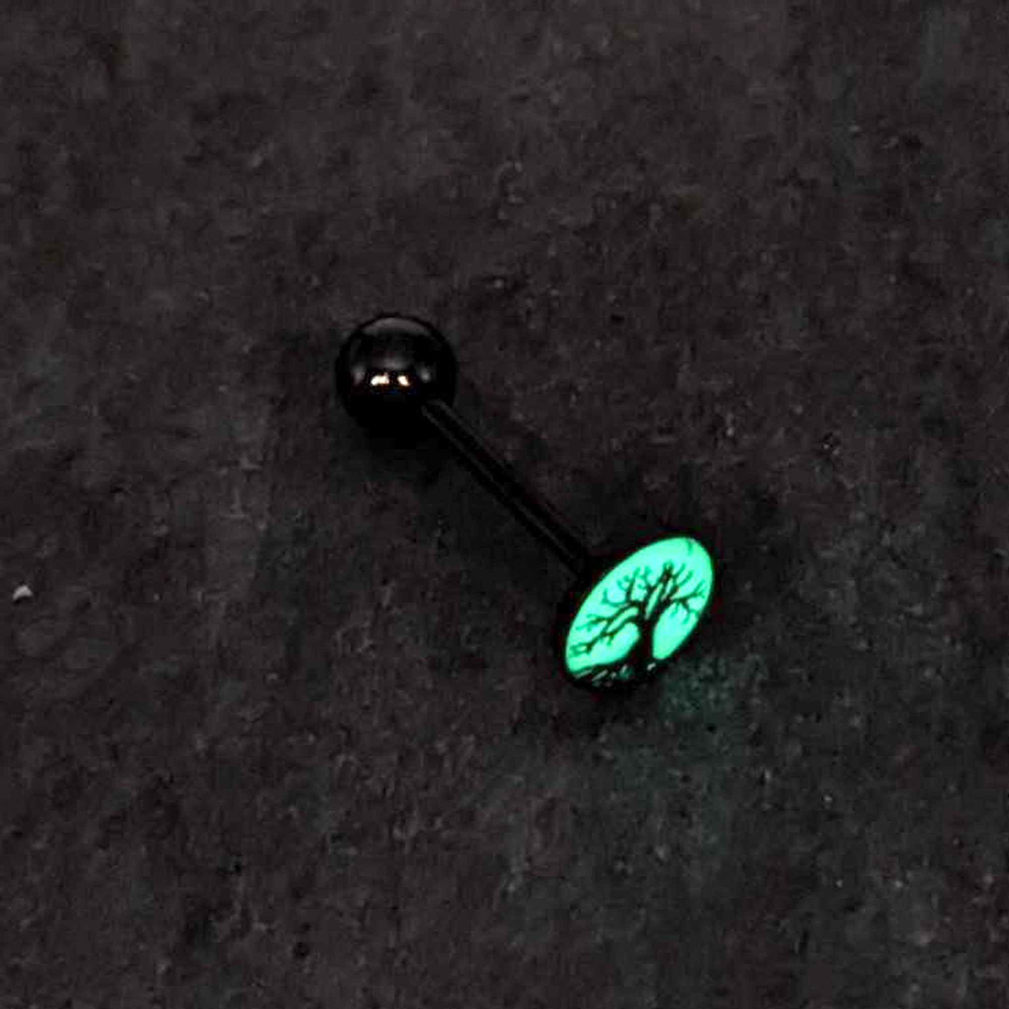 Glow in the Dark Black Anodized Tree of Life Barbell Tongue Ring