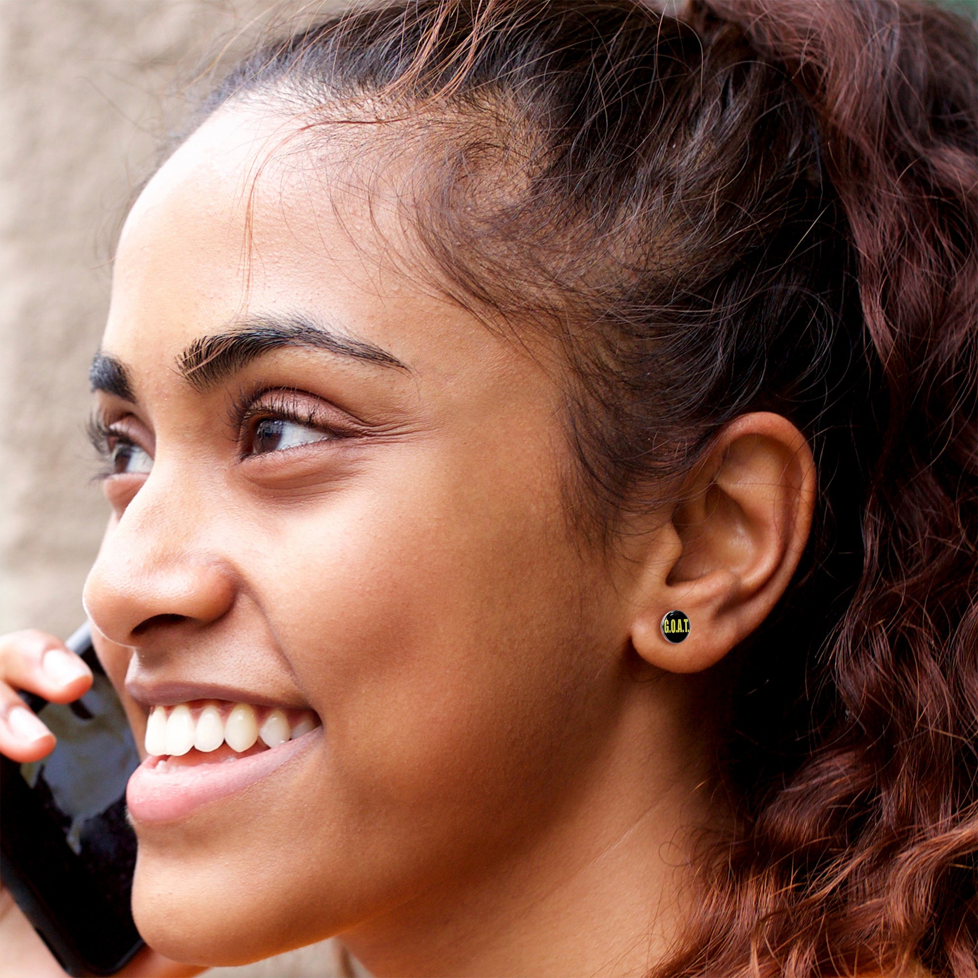 Hypoallergenic jewelry for sensitive skin.G.O.A.T. Stud Earrings