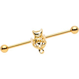 Gold Tone Anodized Luck Be A Kitty Tonight Industrial Barbell 38mm
