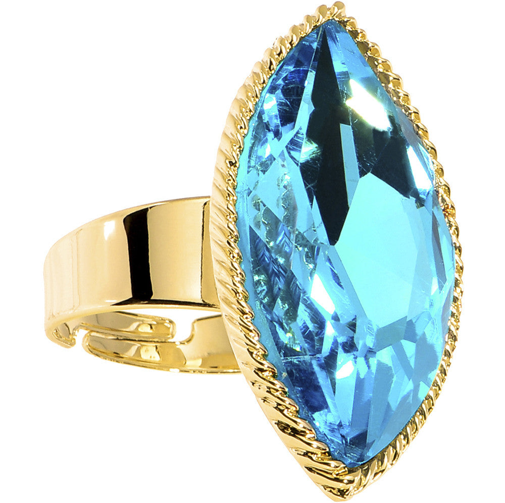 Gold Tone Aqua Faceted Teardrop Adjustable Ring