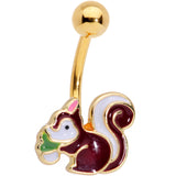 Gold Tone Brown White Snacking Squirrel Belly Ring