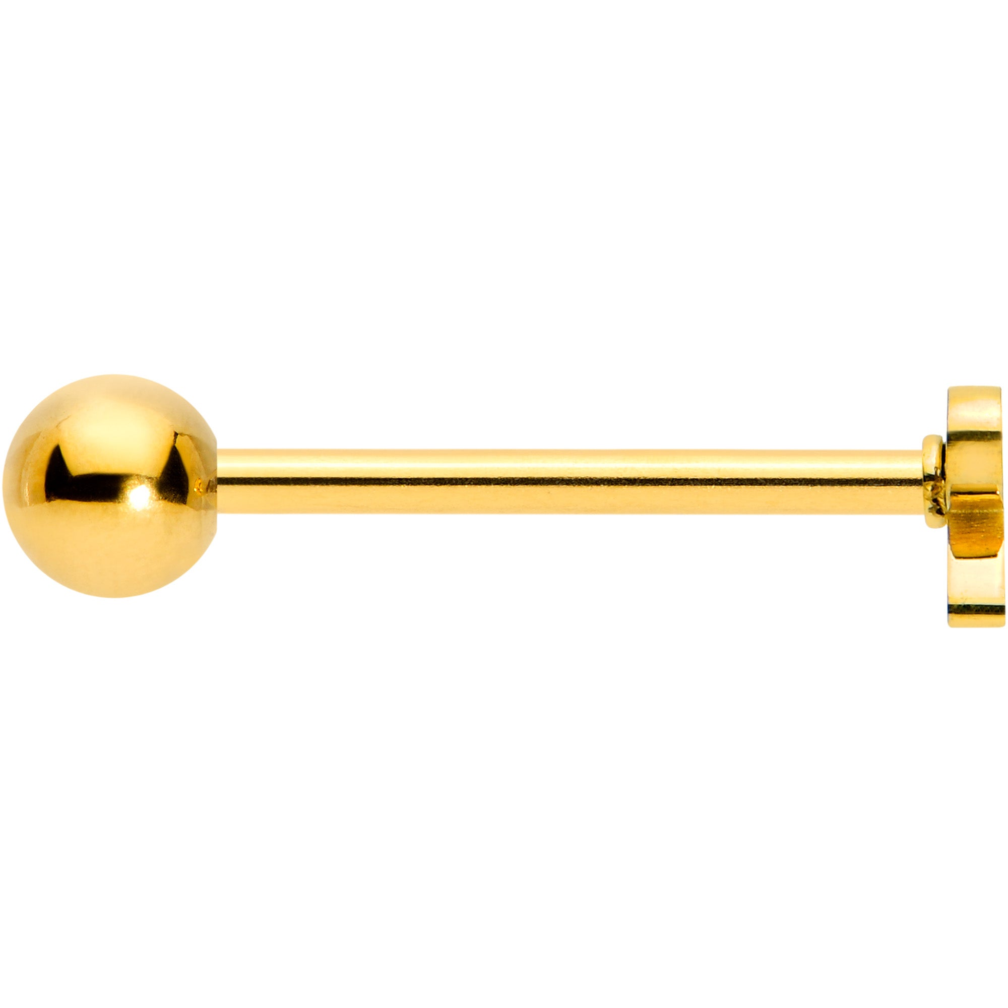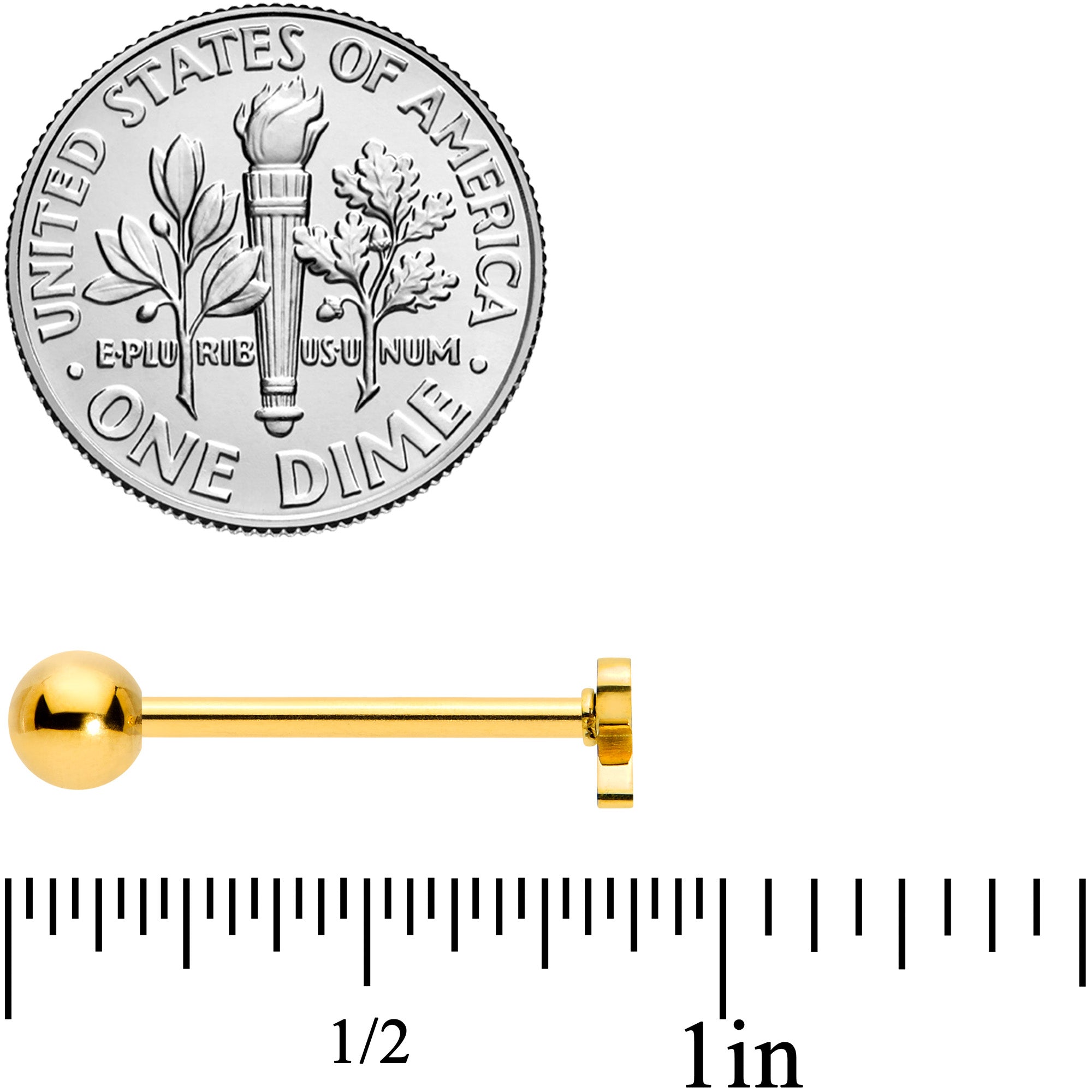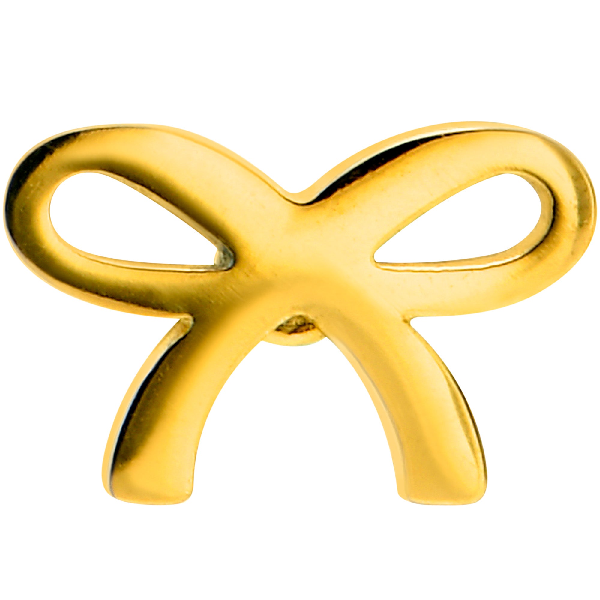 Wrap your words up with a pretty bow when you're rocking this 14 gauge tongue jewelry! It's made with a 5/8" gold tone PVD over 316L surgical grade stainless steel straight barbell with a 5mm bottom ball end. The top end features a matching bow charm, with simple lines and understated detailing. Tell the world you've got it all wrapped up with this modern and marvelous tongue piercing ring!