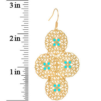 Gold Turquoise Color Round Filigree Dangle Earrings