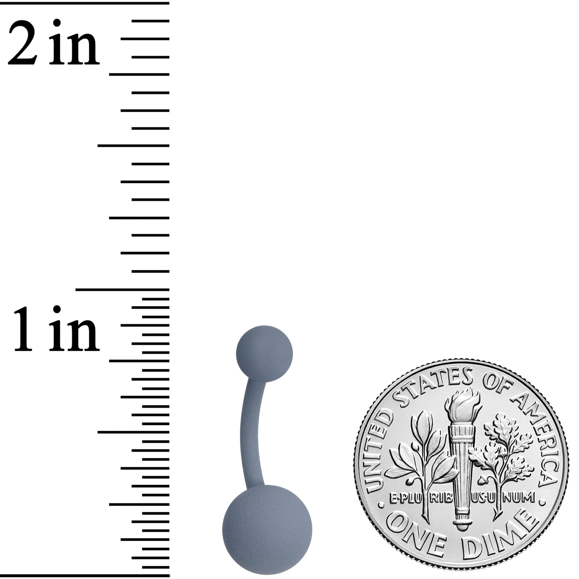 If you want to add a simple splash of color to your navel piercing without overwhelming your look, this 14 gauge belly button ring is exactly what you're looking for! It's made with a 3/8" grey matte plated over 316L surgical grade stainless steel curved barbell. It features matching grey matte acrylic ball ends with a 5mm top ball end and an 8mm bottom ball end. Let this gorgeously grey navel ring give you the subtle style you're after!