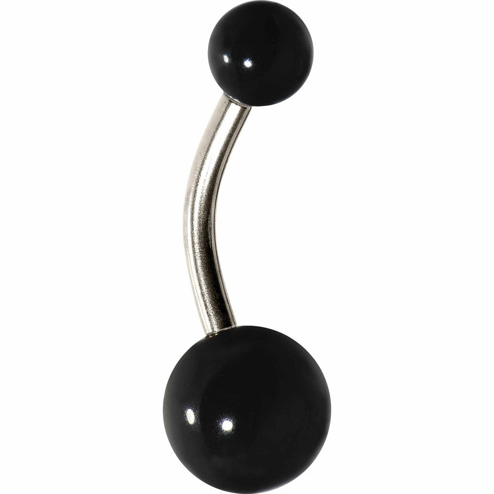 Hypoallergenic jewelry for sensitive skin.Any ensemble is simple and chic with this classic black belly ring. Acrylic navel ring with flawless solid matte finish. Solid titanium curved barbell belly jewelry.