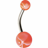 Hypoallergenic jewelry for sensitive skin.Have a blast and dress up your navel whenever you wear this eye-catching 14 gauge belly button ring! Made with a 3/8" grade 23 solid titanium curved barbell, this navel piercing features a 5mm top and 8mm bottom ball end made from lightweight acrylic in swirling orange and white so you are fashionably prepared no matter where you go!