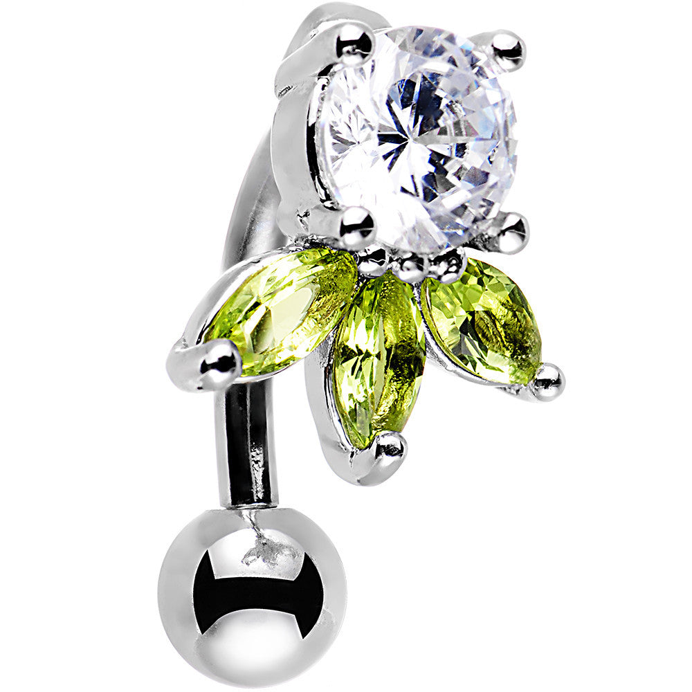 Green and Clear Gem Pretty Petals Flower Top Mount Belly Ring