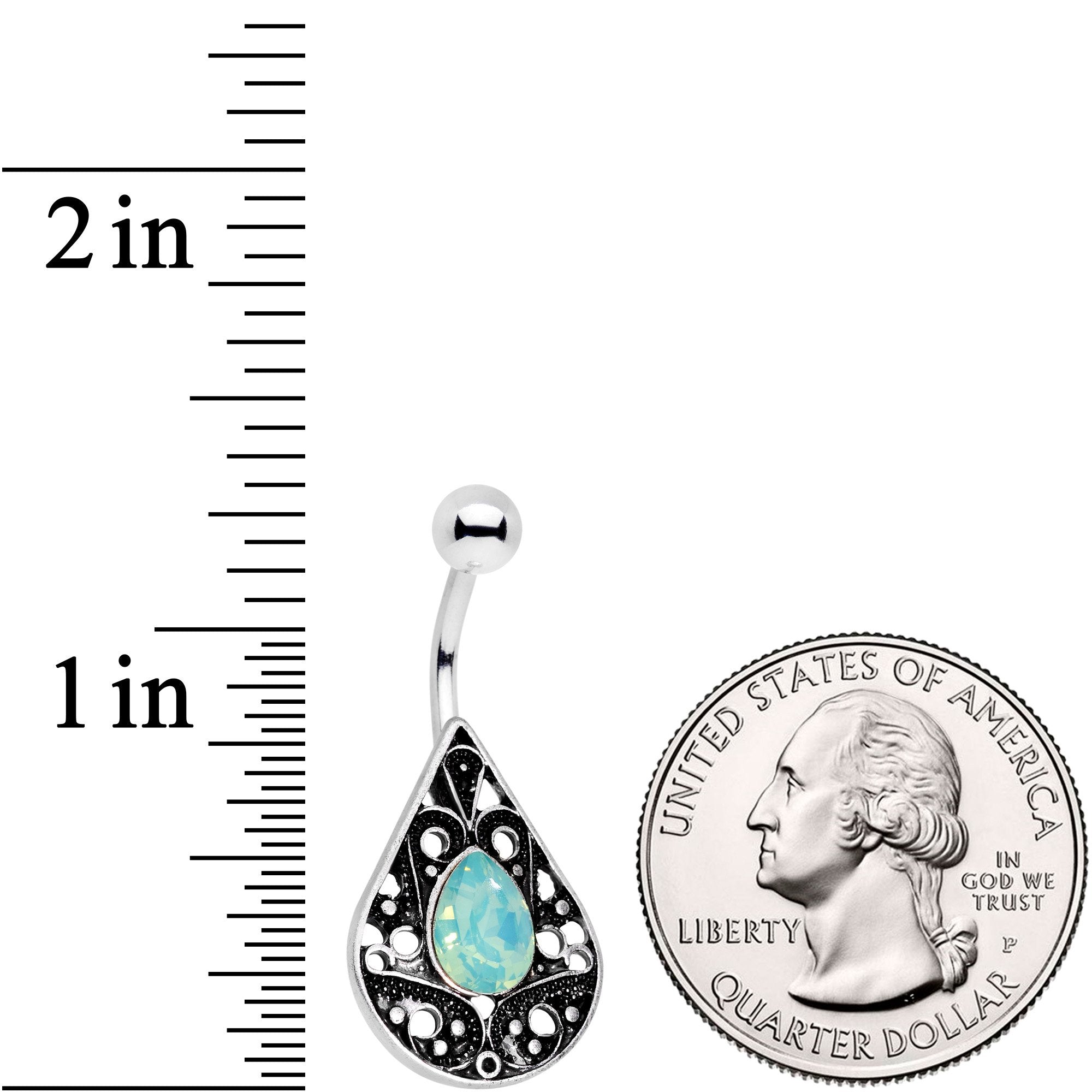 Green Faux Opal Baroque Openwork Elegance Teardrop Belly Ring