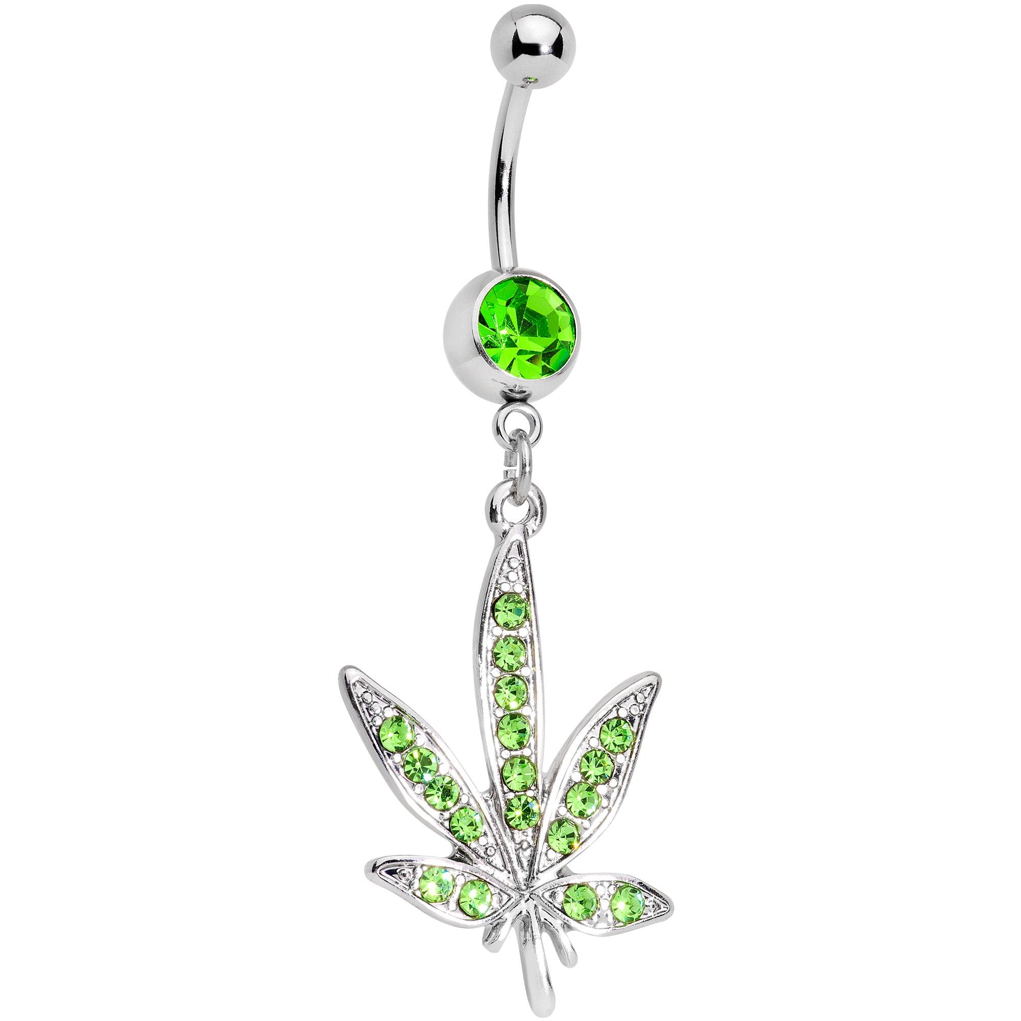 Green Gem 420 Somewhere Marijuana Dangle Belly Ring