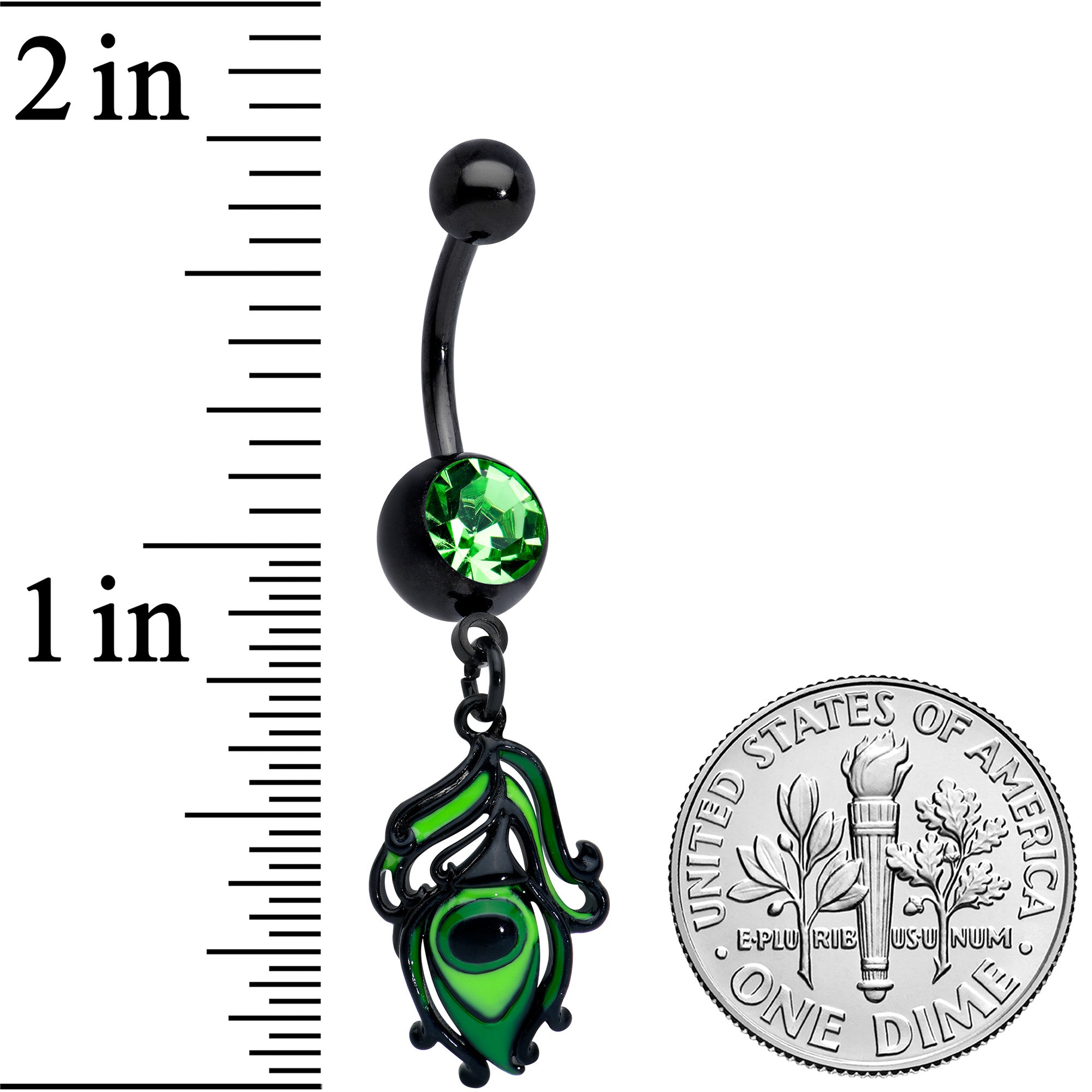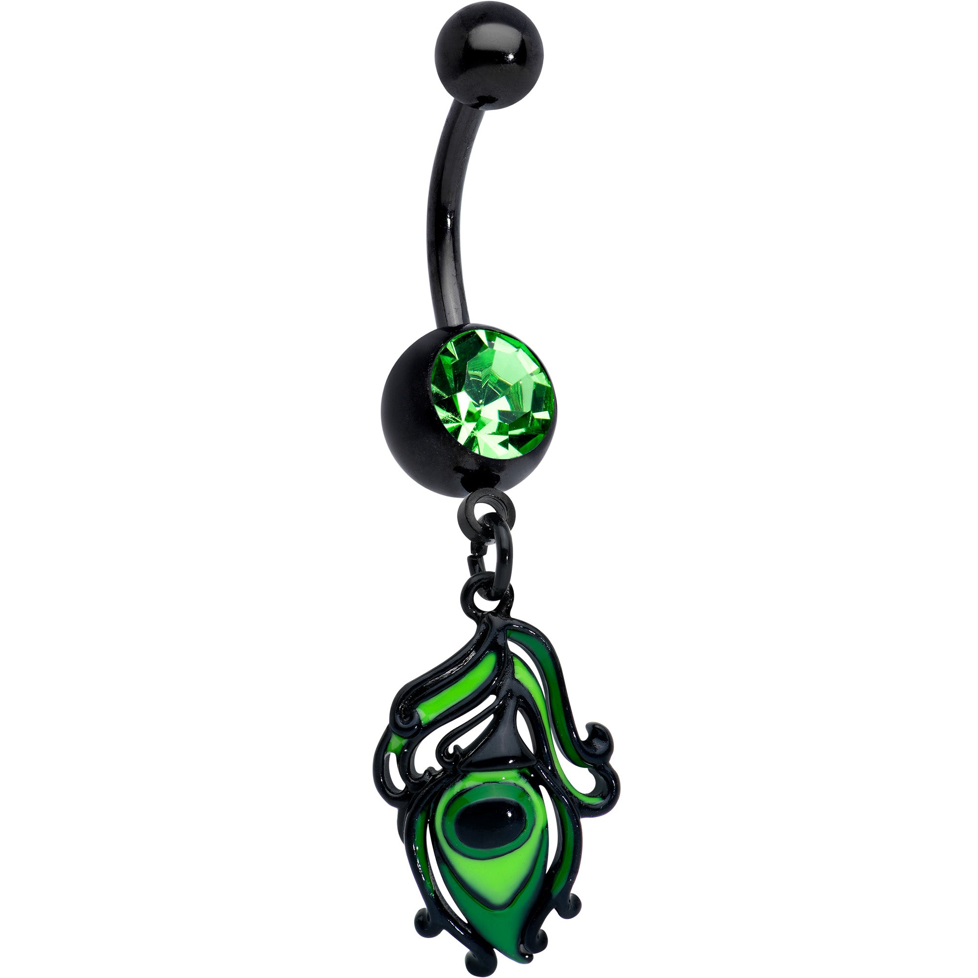 Green Gem Black Striking Peacock Feather Dangle Belly Ring