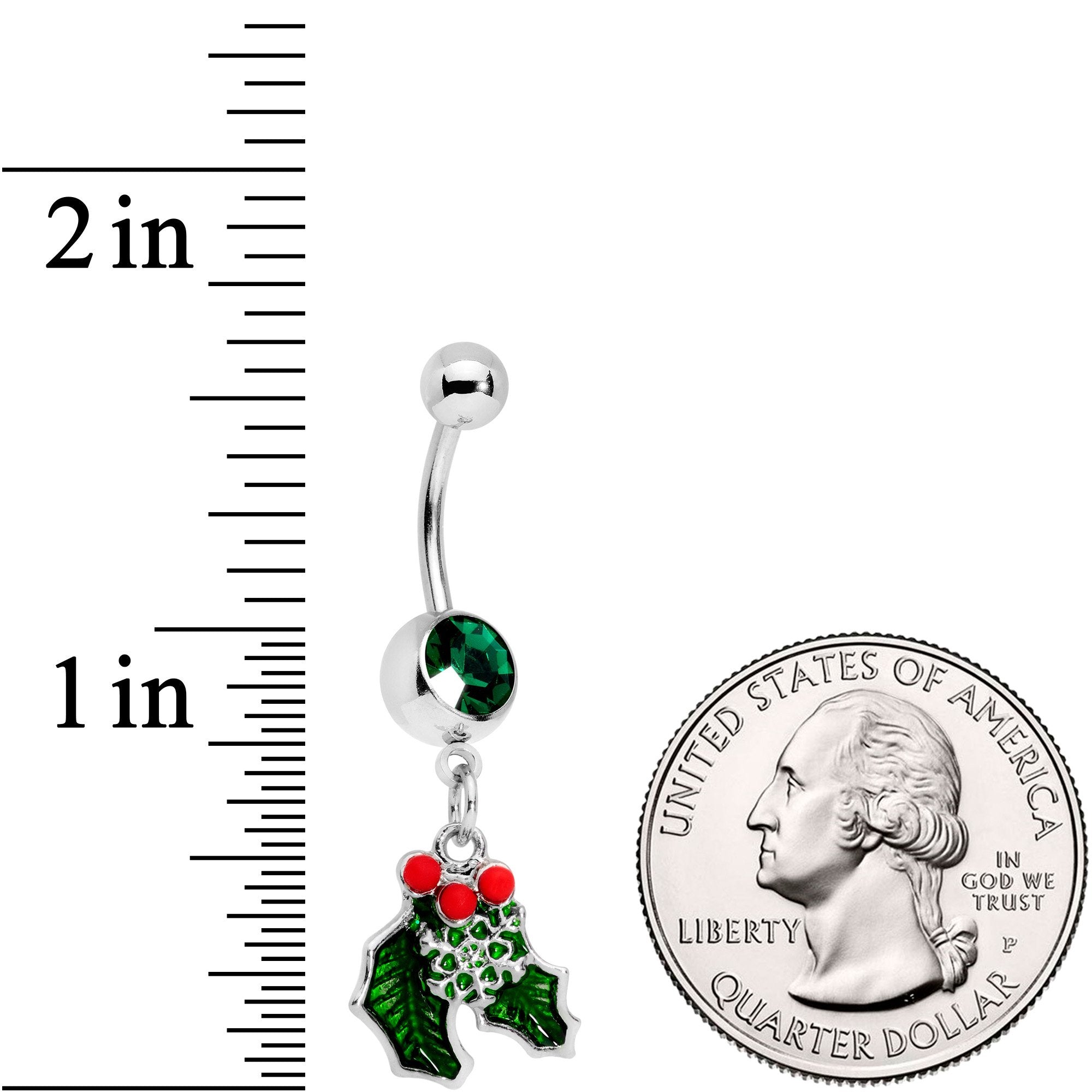 Green Gem Winter Wonderland Snow on the Holly Dangle Belly Ring
