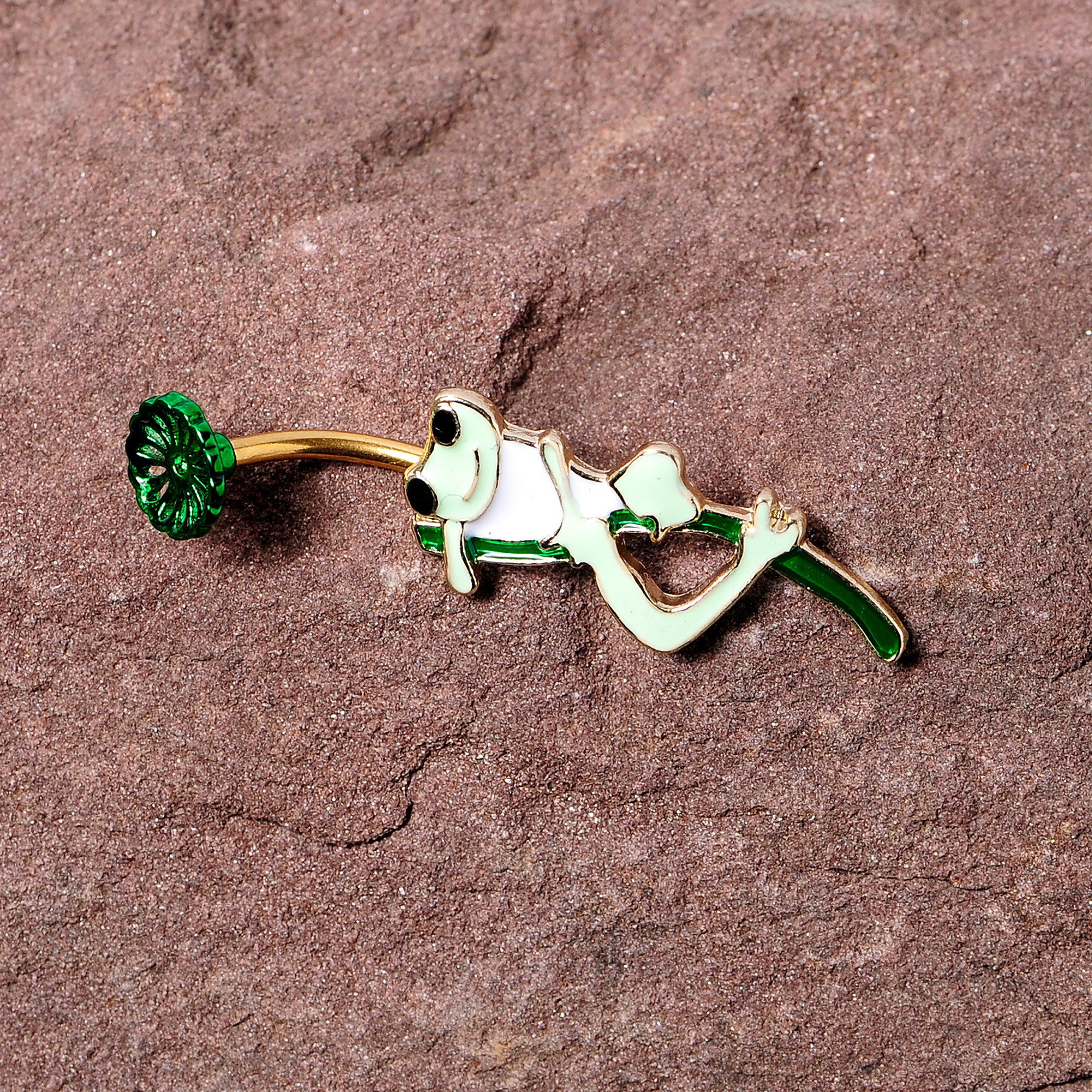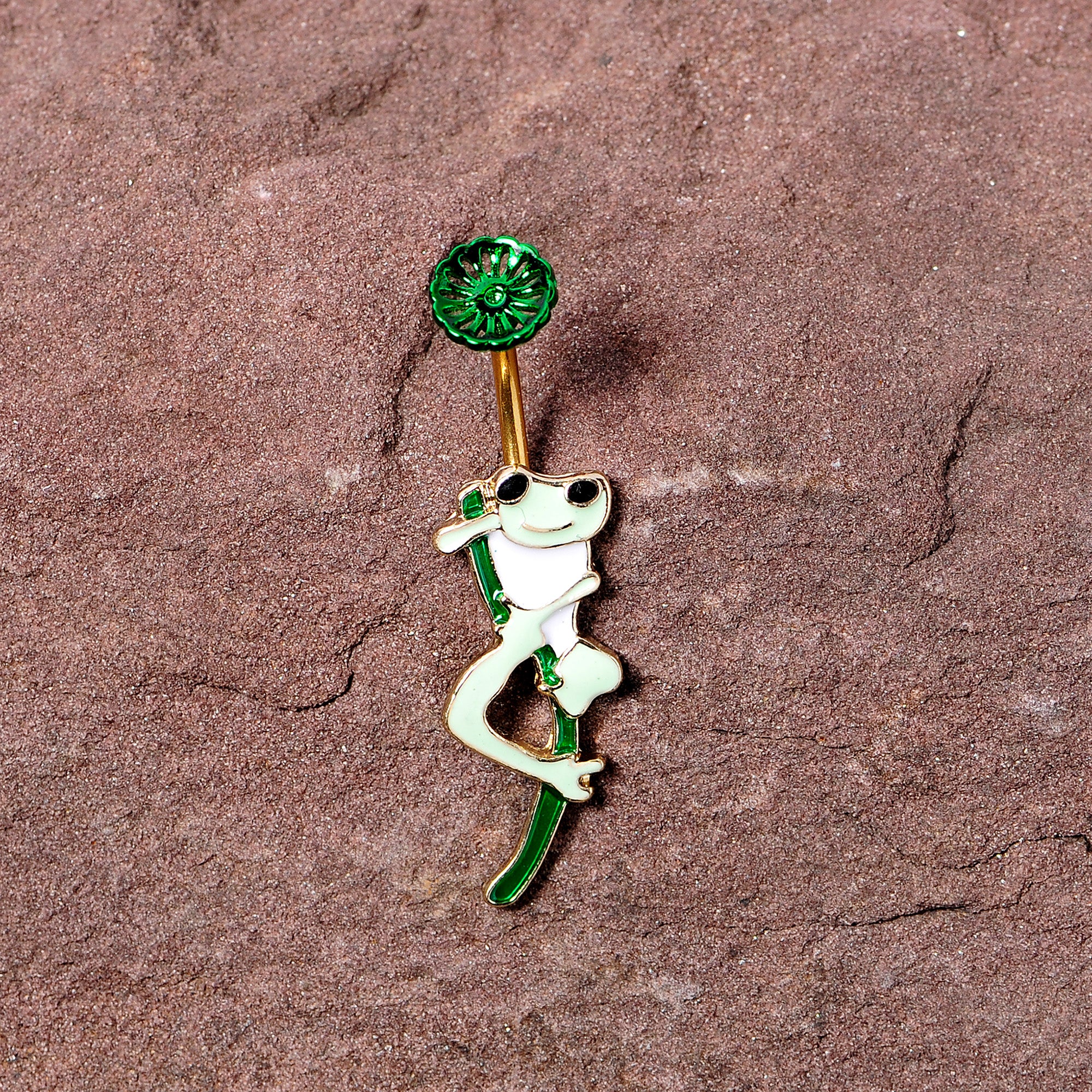 Green Gold Tone Frog Flower Double Mount Belly Ring
