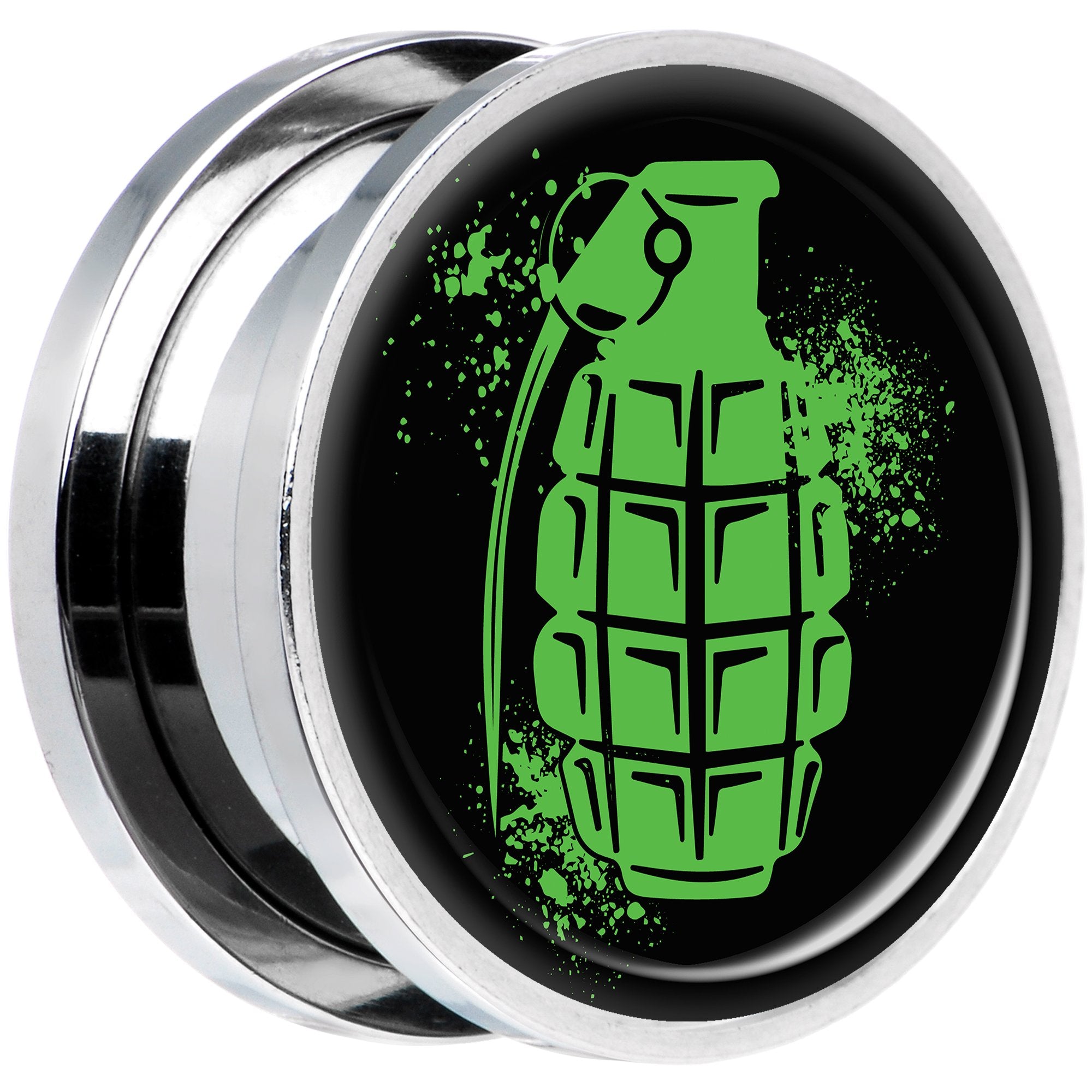 If you love the color green and pop culture images like grenades then this pair of double flare plugs is right for you! Made with durable 316L surgical grade stainless steel, these 11/16" ear gauges are made with a screw fit design for easier insertion and removal and are sold as a set of two for you.