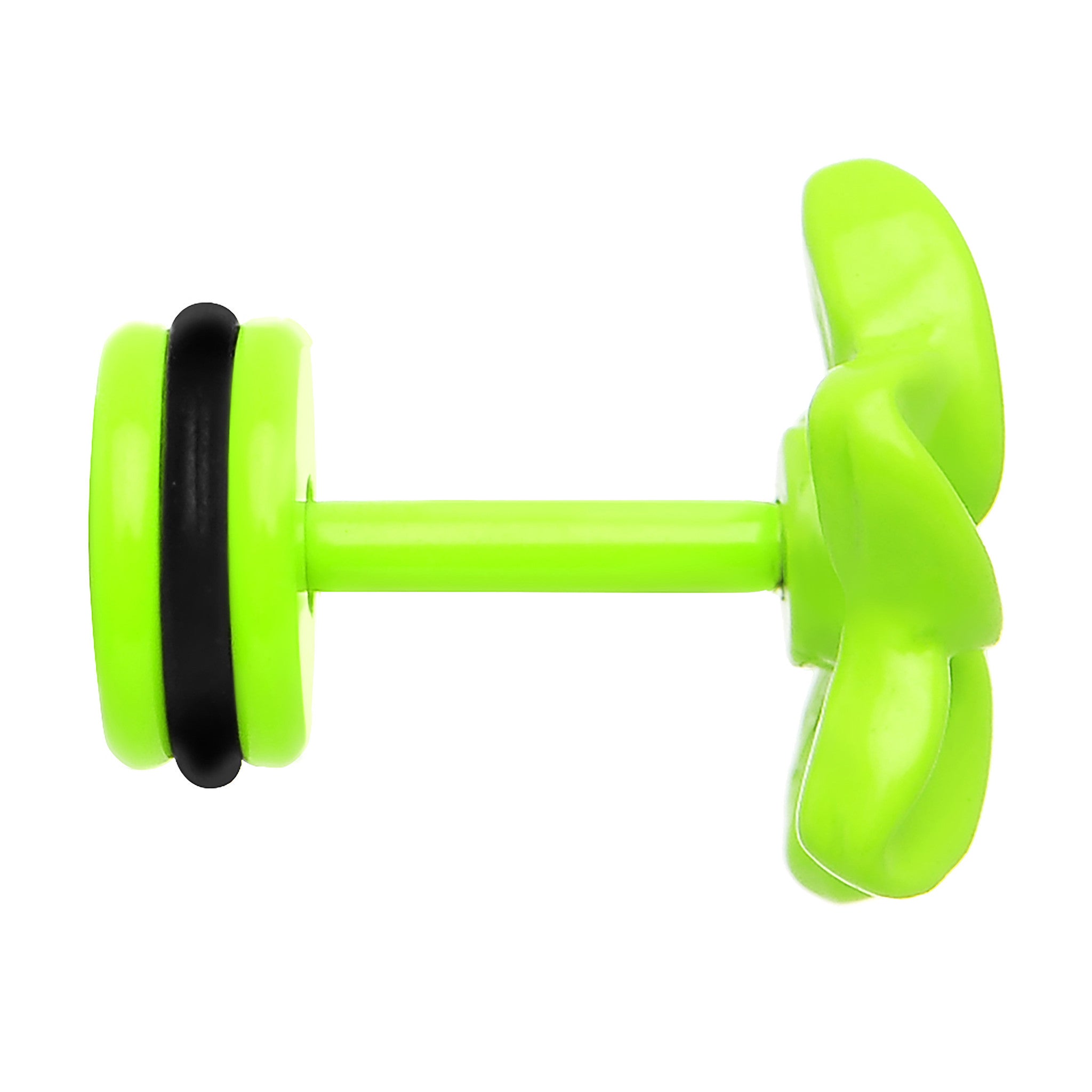 Get the look of a large gauge plug piercing with this fake cheater plug, designed for a 16 gauge piercing. Wish upon a star and receive great fashion! Bright green star has unique twisting pattern. Fake plug sold individually.