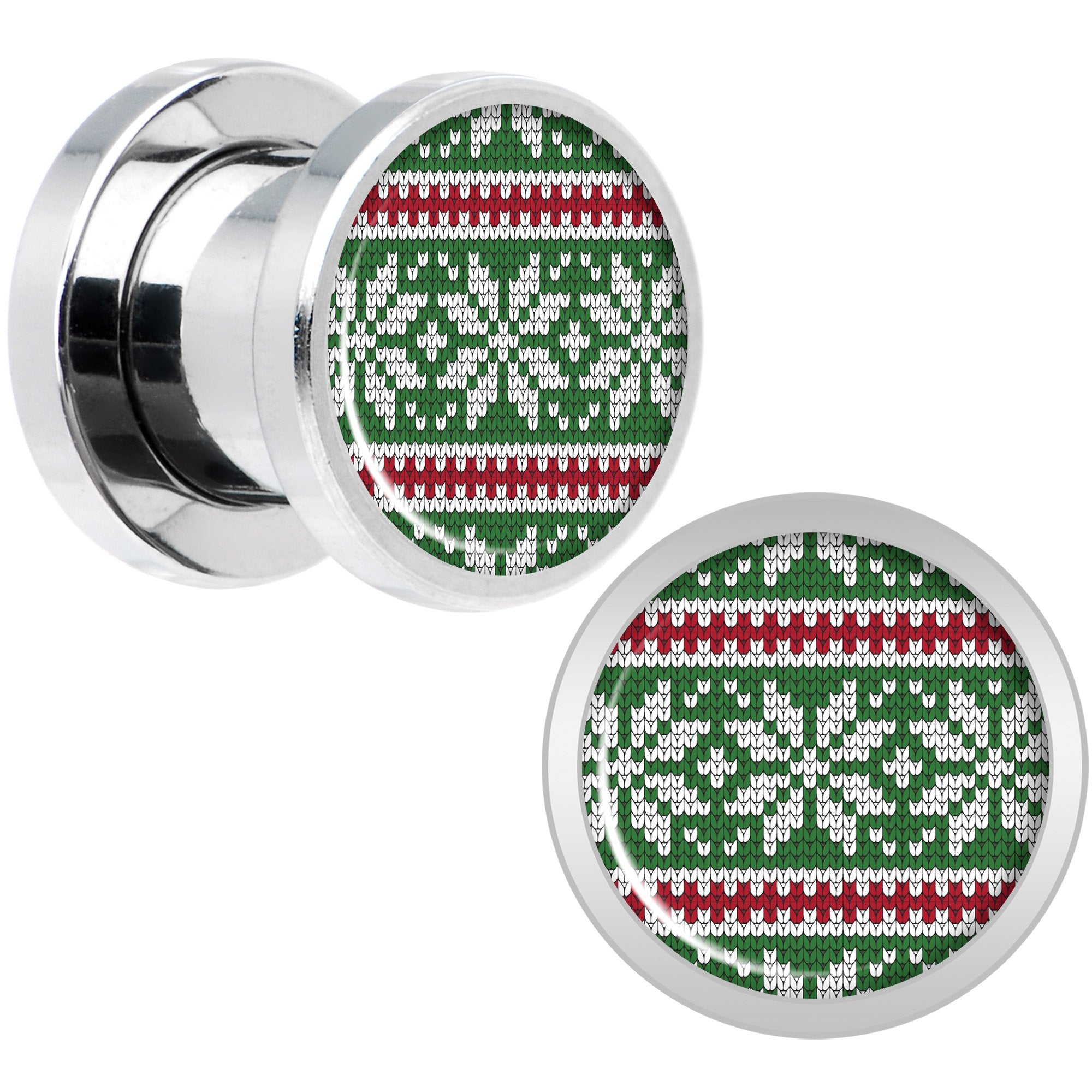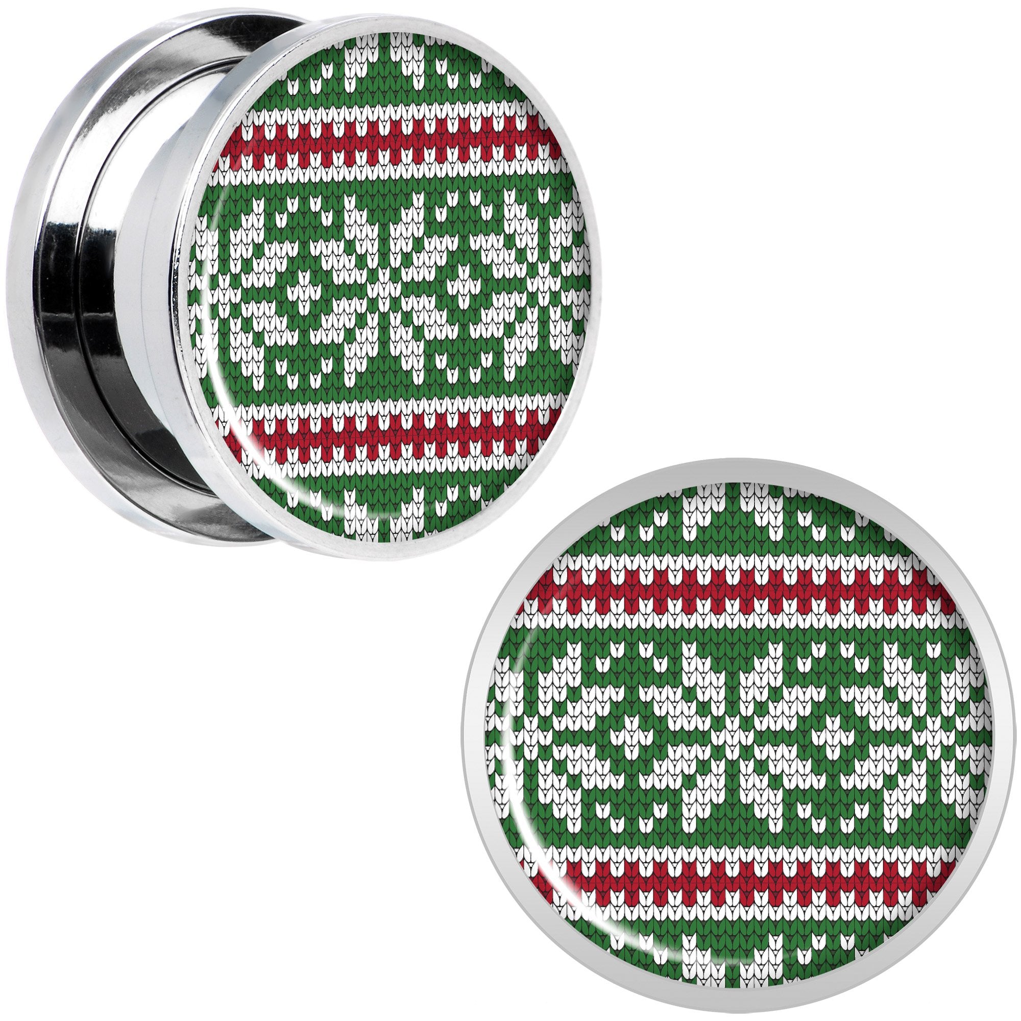 Green Red Christmas Sweater Screw Fit Plug Set Sizes 5mm to 20mm