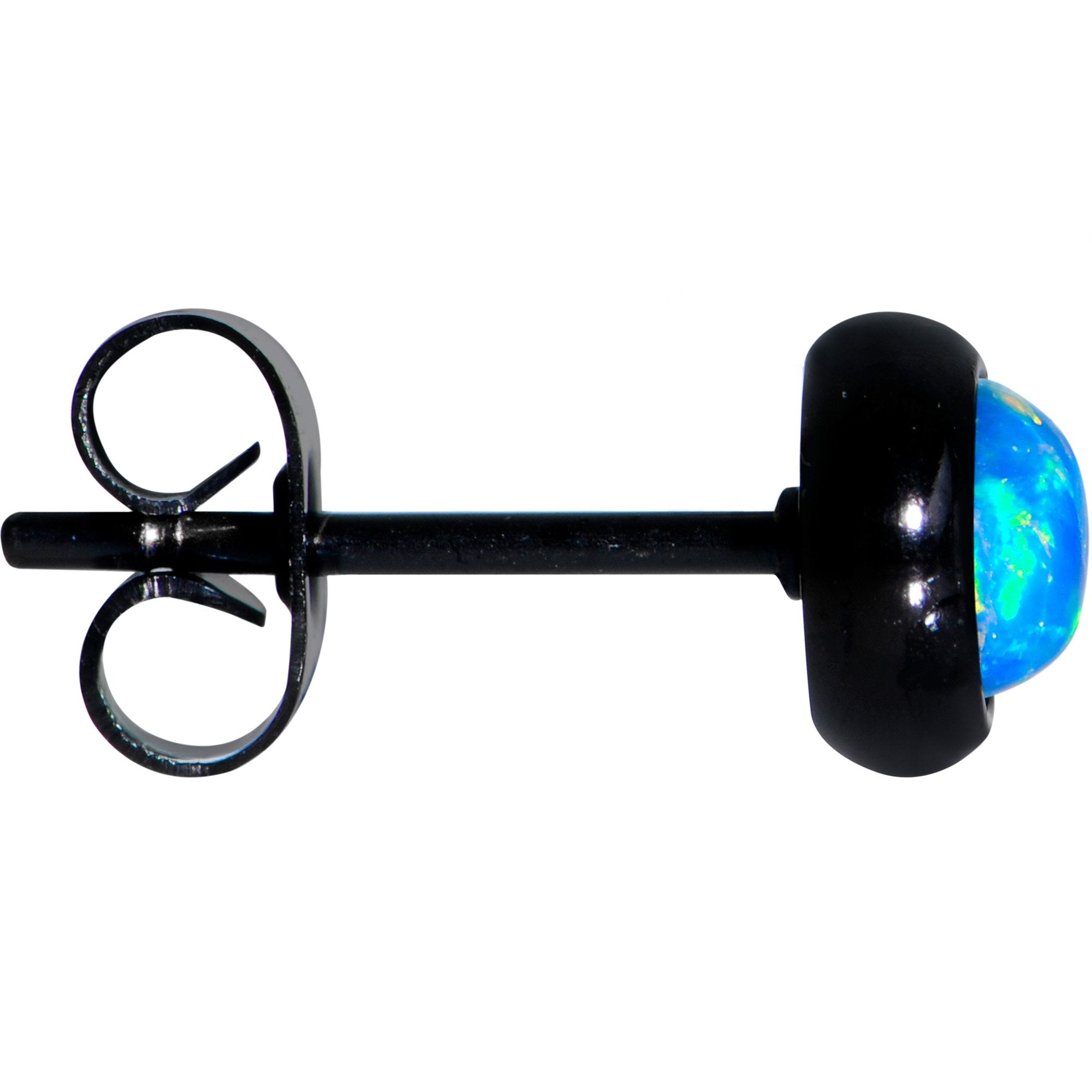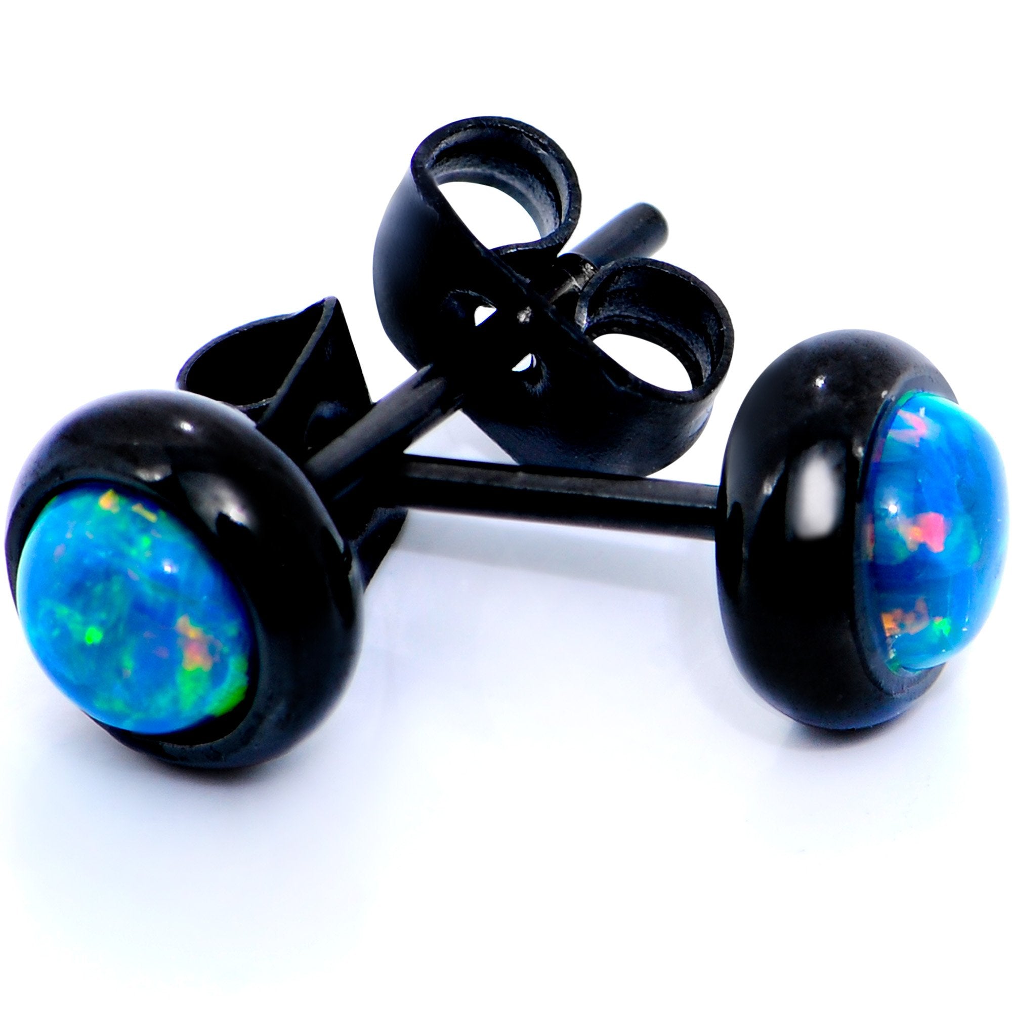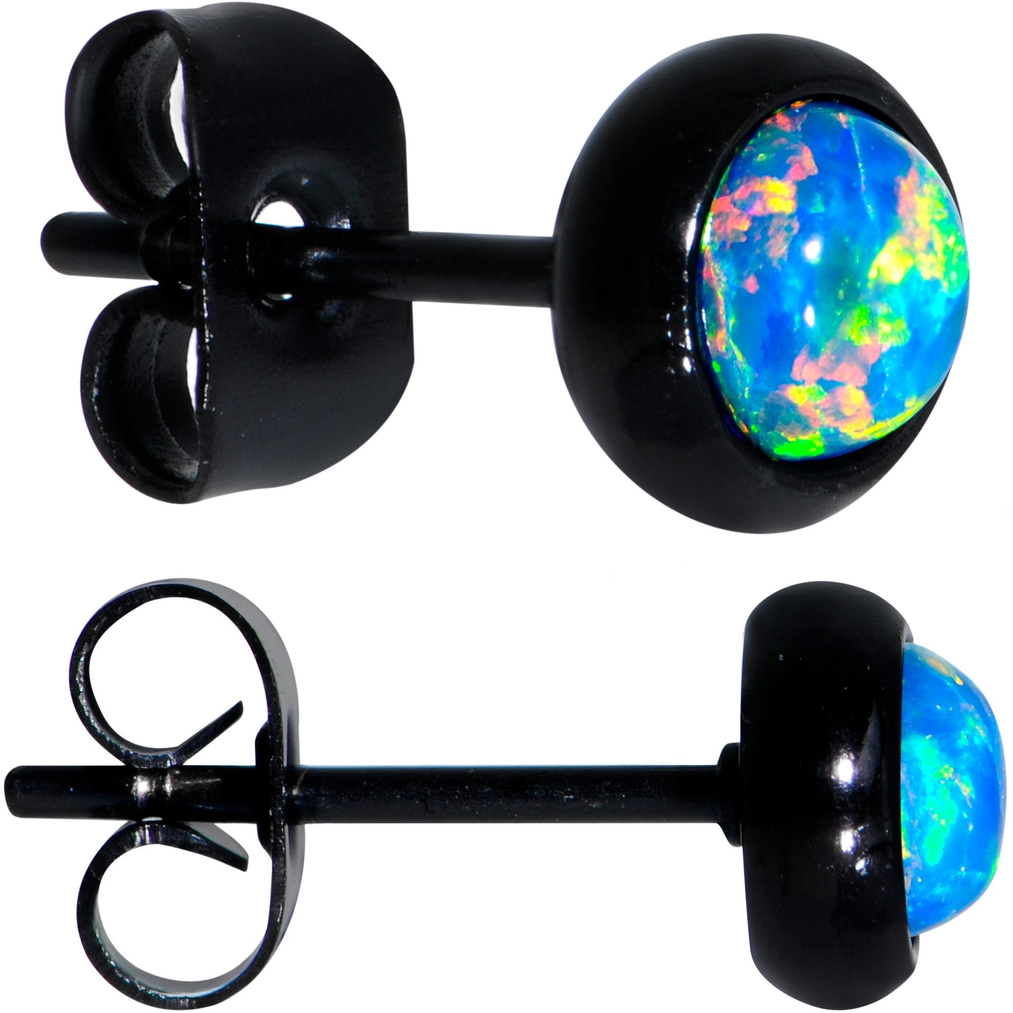 6mm Diameter, Black IP over 316L Surgical Grade Stainless Steel Posts with Friction Backs, Bezel Set, Synthetic Opal